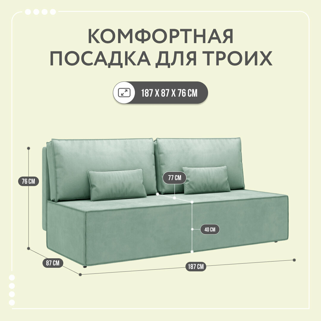 Диван-кровать раскладной прямой Корсо Лайт, еврокнижка, велюр, мятный, 187х87х76