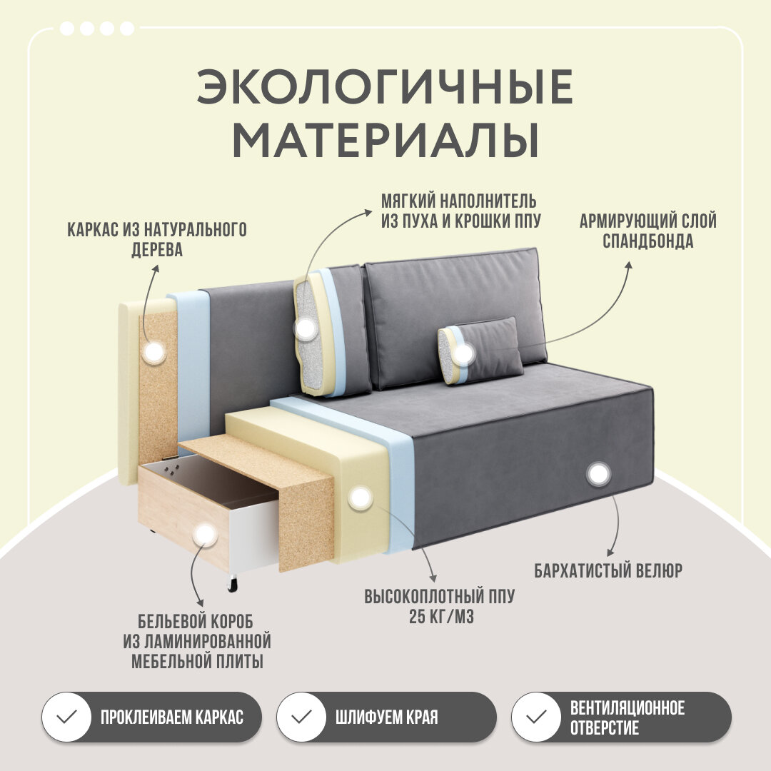 СохранитьДиван-кровать Dee One раскладной прямой Корсо Лайт, еврокнижка, велюр, 187х87х76, с ящиком, мятный интересное: