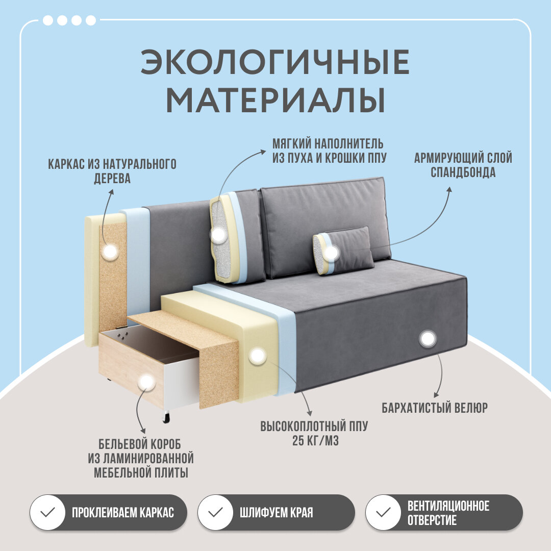 СохранитьДиван-кровать Dee One раскладной прямой Корсо Лайт, еврокнижка, велюр, 187х87х76, с ящиком, синий интересное: