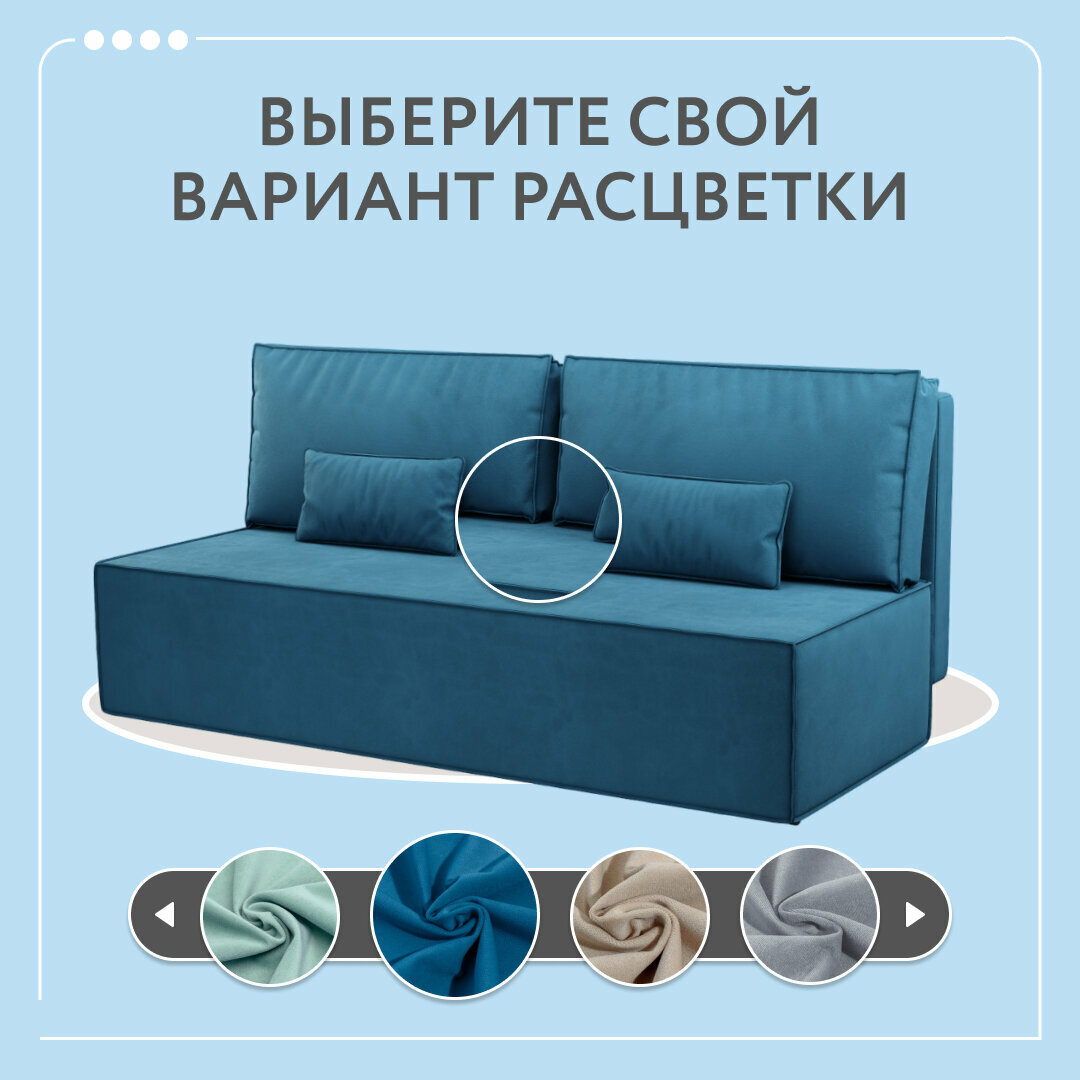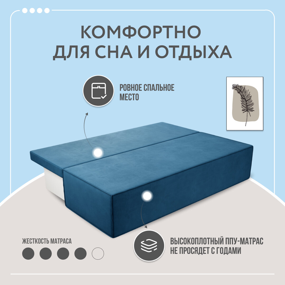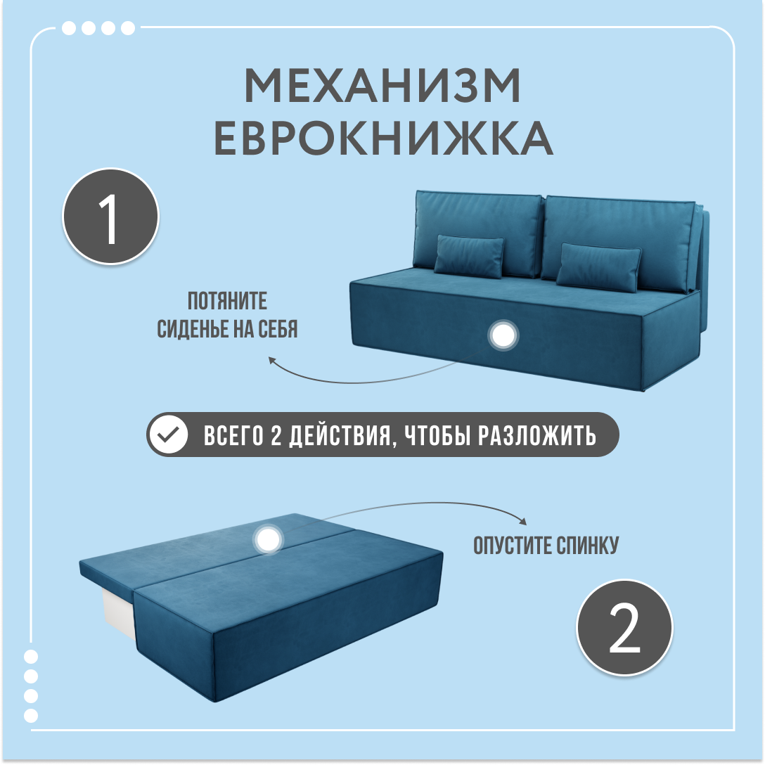 Диван-кровать раскладной прямой Веселая компания, еврокнижка, велюр, синий, 184х87х76