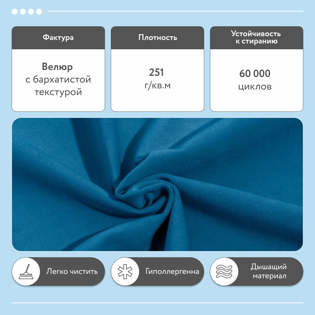 Диван-кровать раскладной прямой Корсо Лайт, еврокнижка, велюр, синий, 187х87х76