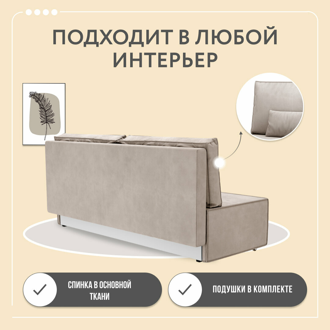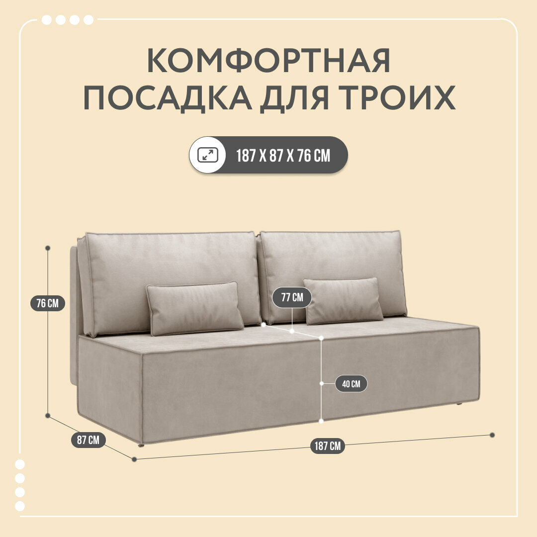 Диван-кровать раскладной прямой Корсо Лайт, еврокнижка, велюр, бежевый, 187х87х76