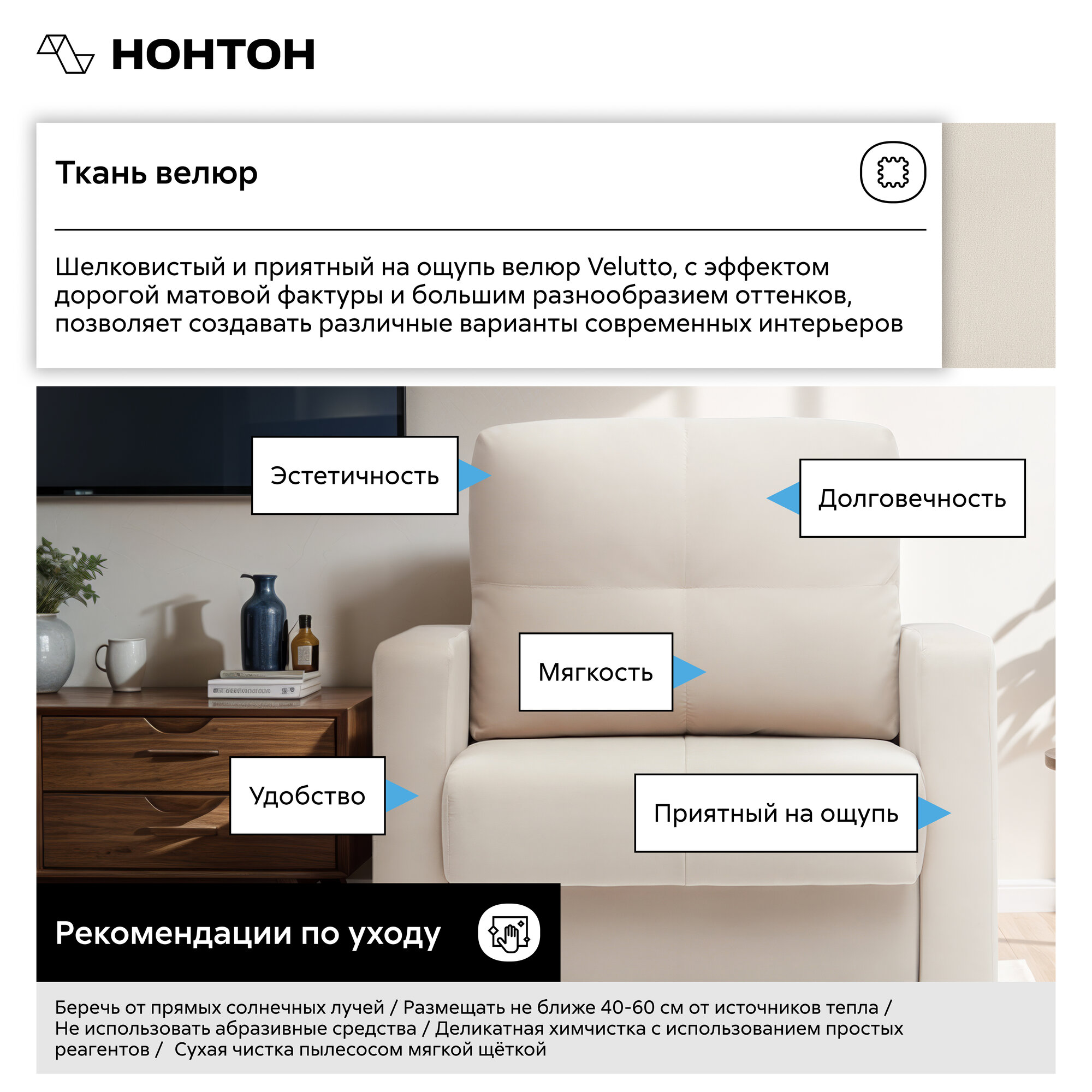 Кресло еврокнижка Нонтон Вита, велюр бежевое 97х93х95 см интересное: