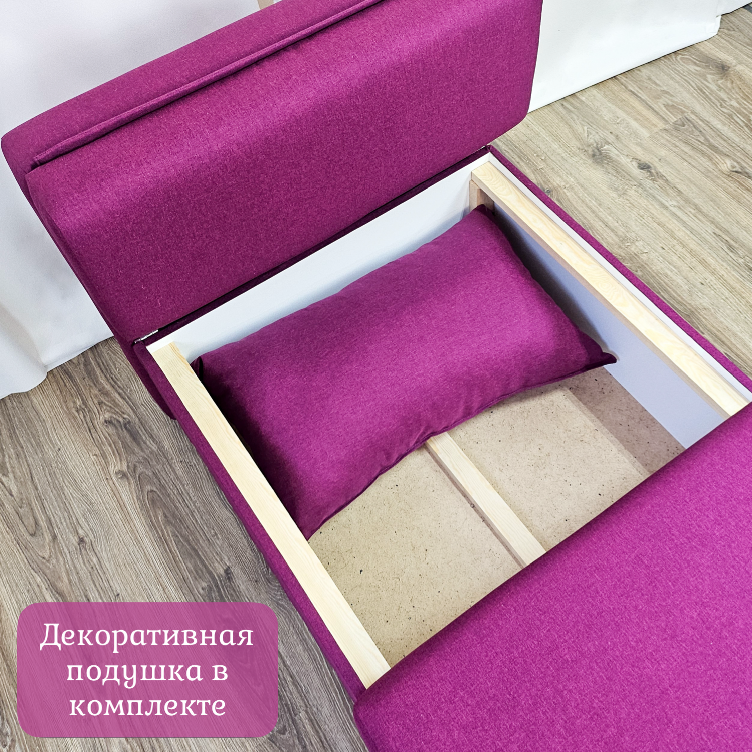 | Особенности | без колесиков, без подлокотников, с ножками, с подушкой, с ящиком для белья |