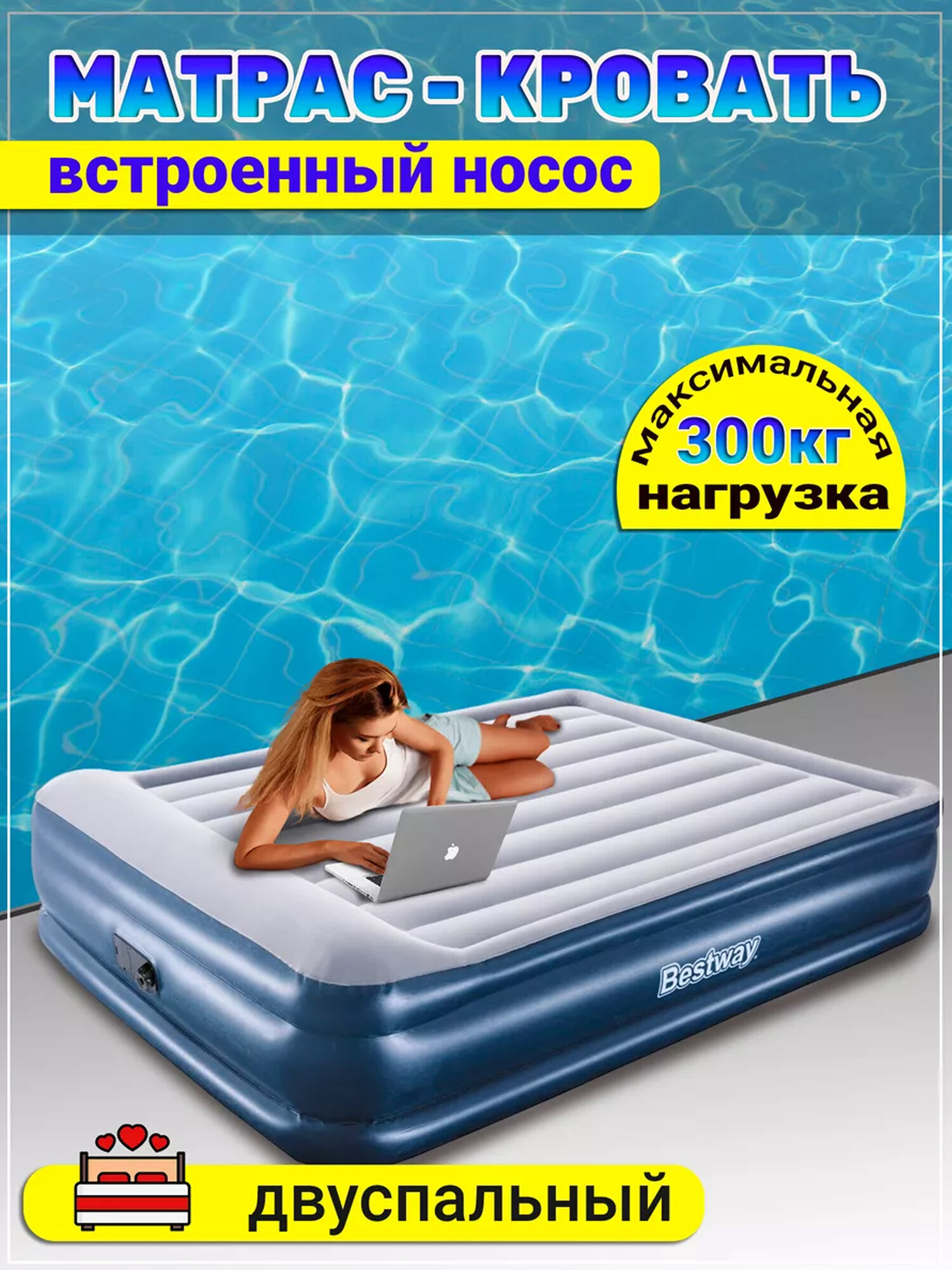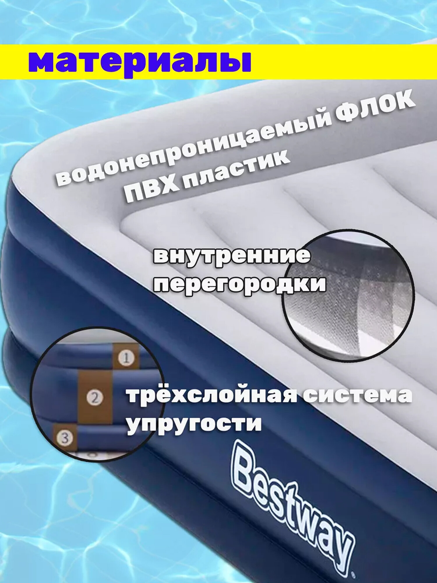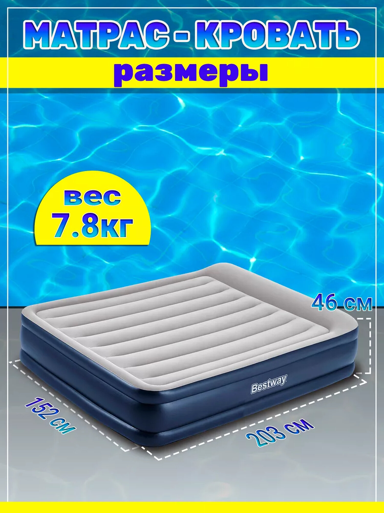 Кровать надувная с насосом двуспалная 203х152х46см интересное: