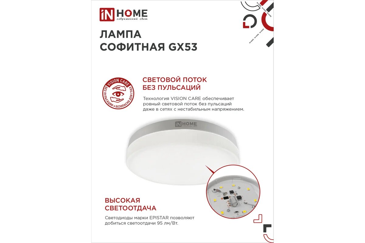 Лампа светодиодная IN HOME, LED-GX53-VC 15Вт 230В 3000К 1430Лм, Теплый белый свет, 10 шт.