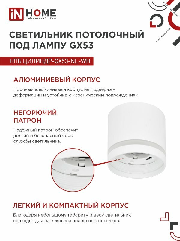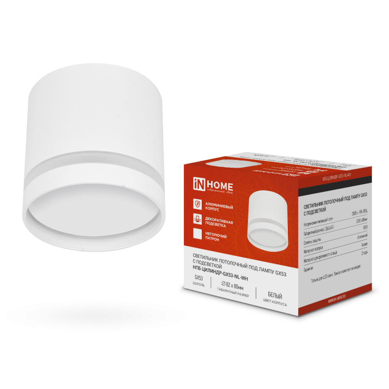 Светильник потолочный НПБ ЦИЛИНДР-GX53-NL-WH под лампу GX53 82х80мм белый IN HOME интересное: