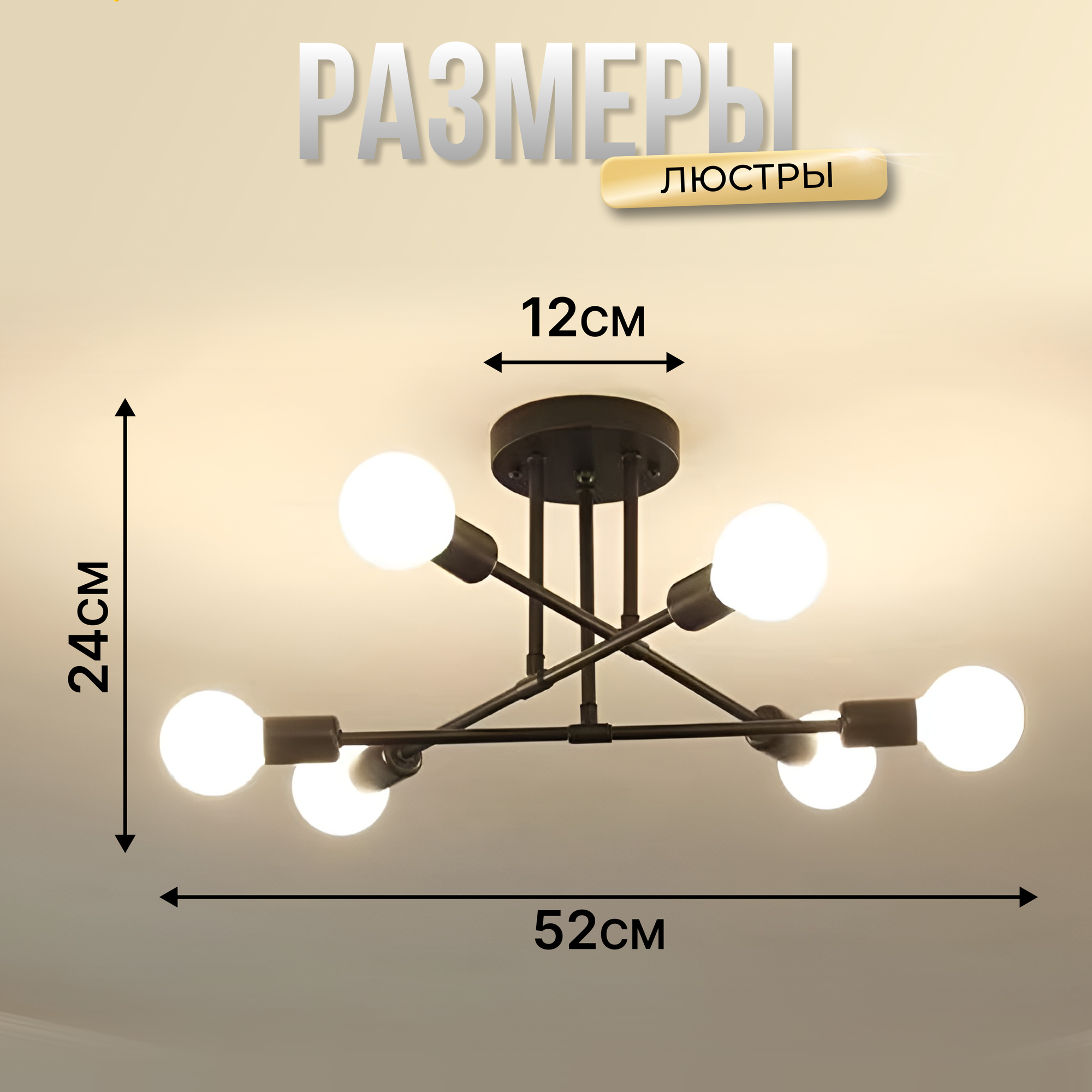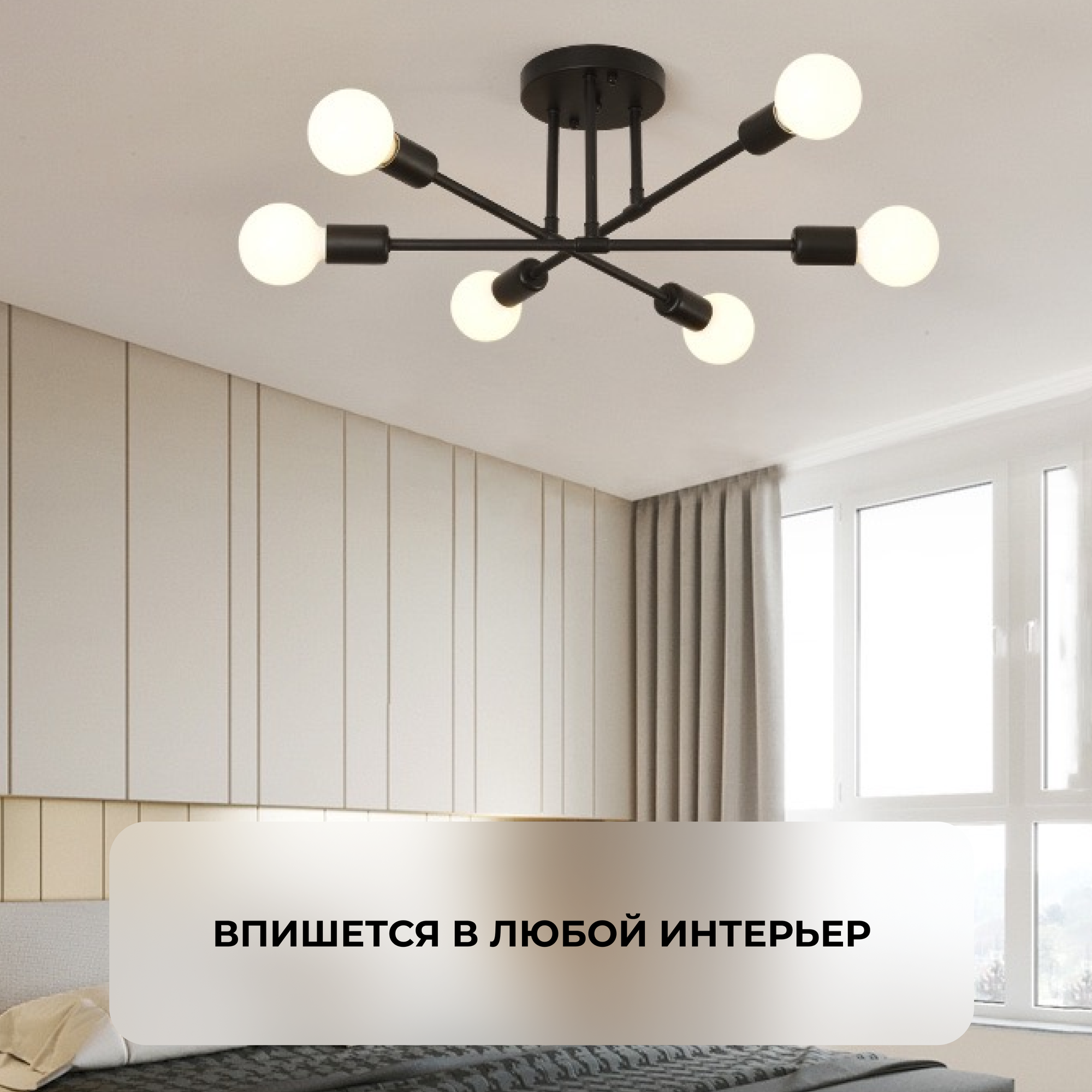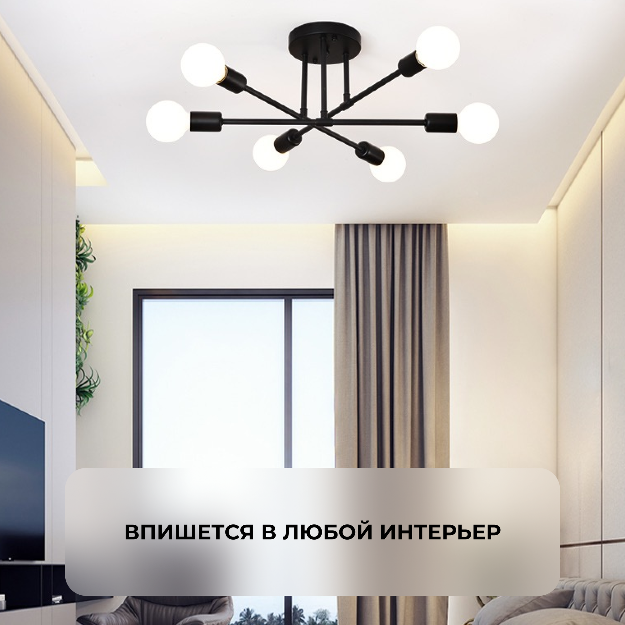 Балтийский светлячок Люстра 6 рожков без плафонов, черная L-06CH интересное: