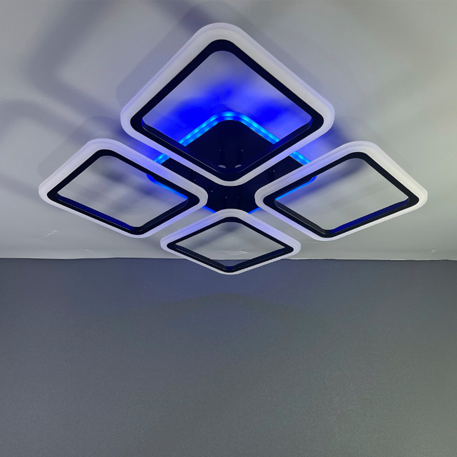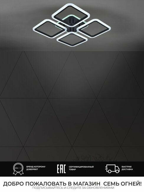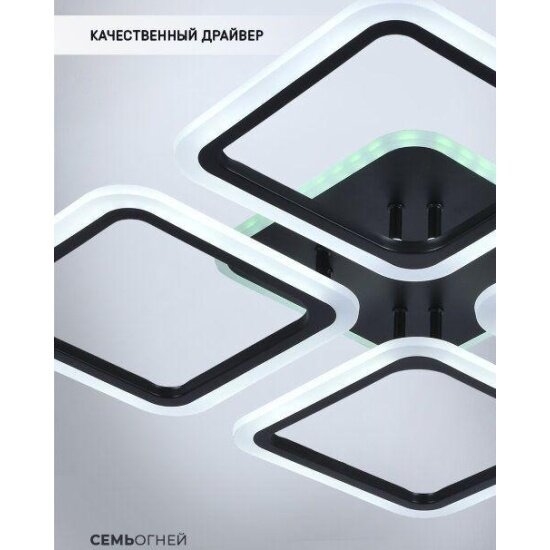Люстра потолочная светодиодная Семь Огней, черная, с пультом и RGB подсветкой