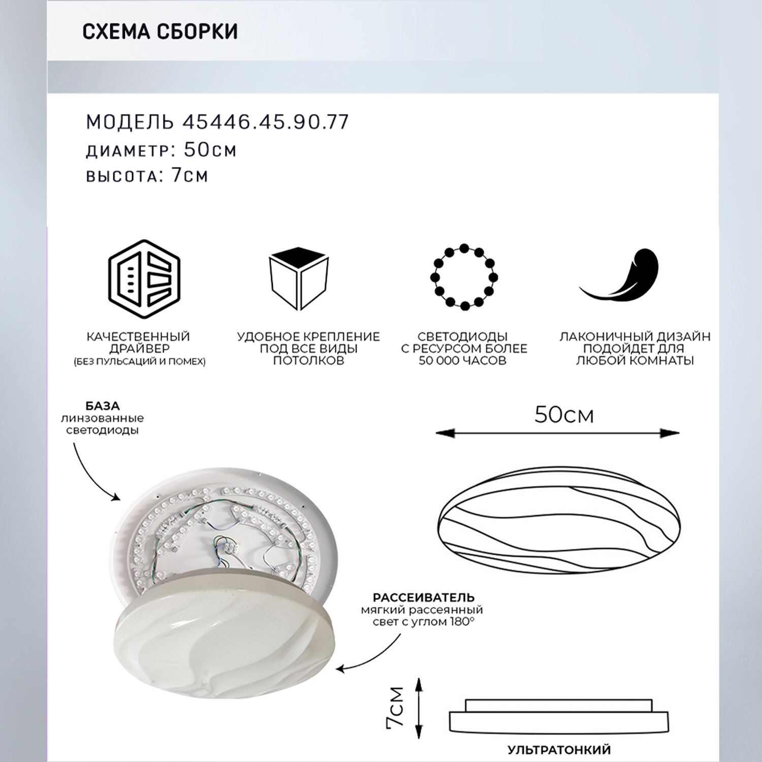 Светильник светодиодный, настенно-потолочный Семь Огней 45446.45.90.77 управляемый интересное: