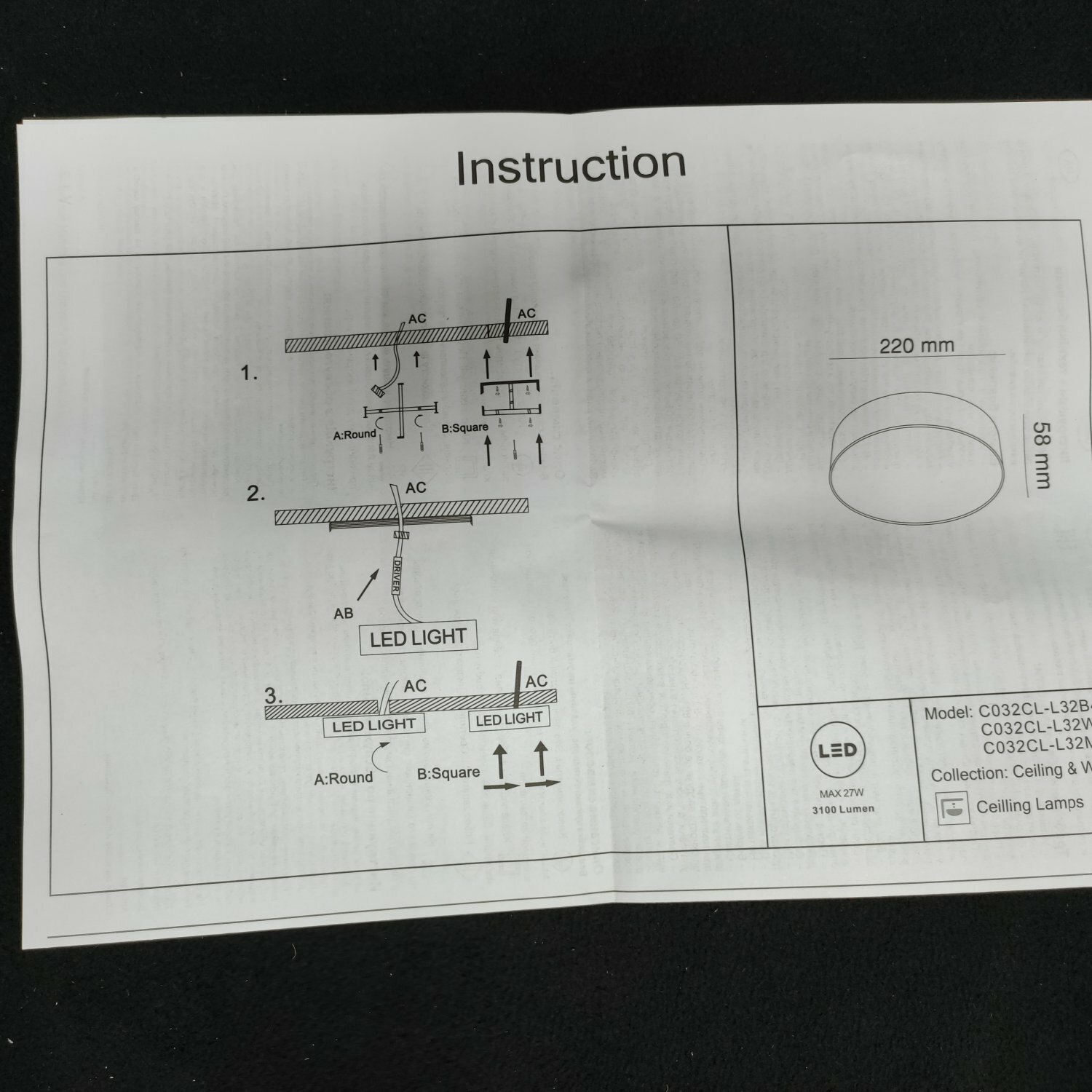 | Направление плафонов | вниз |