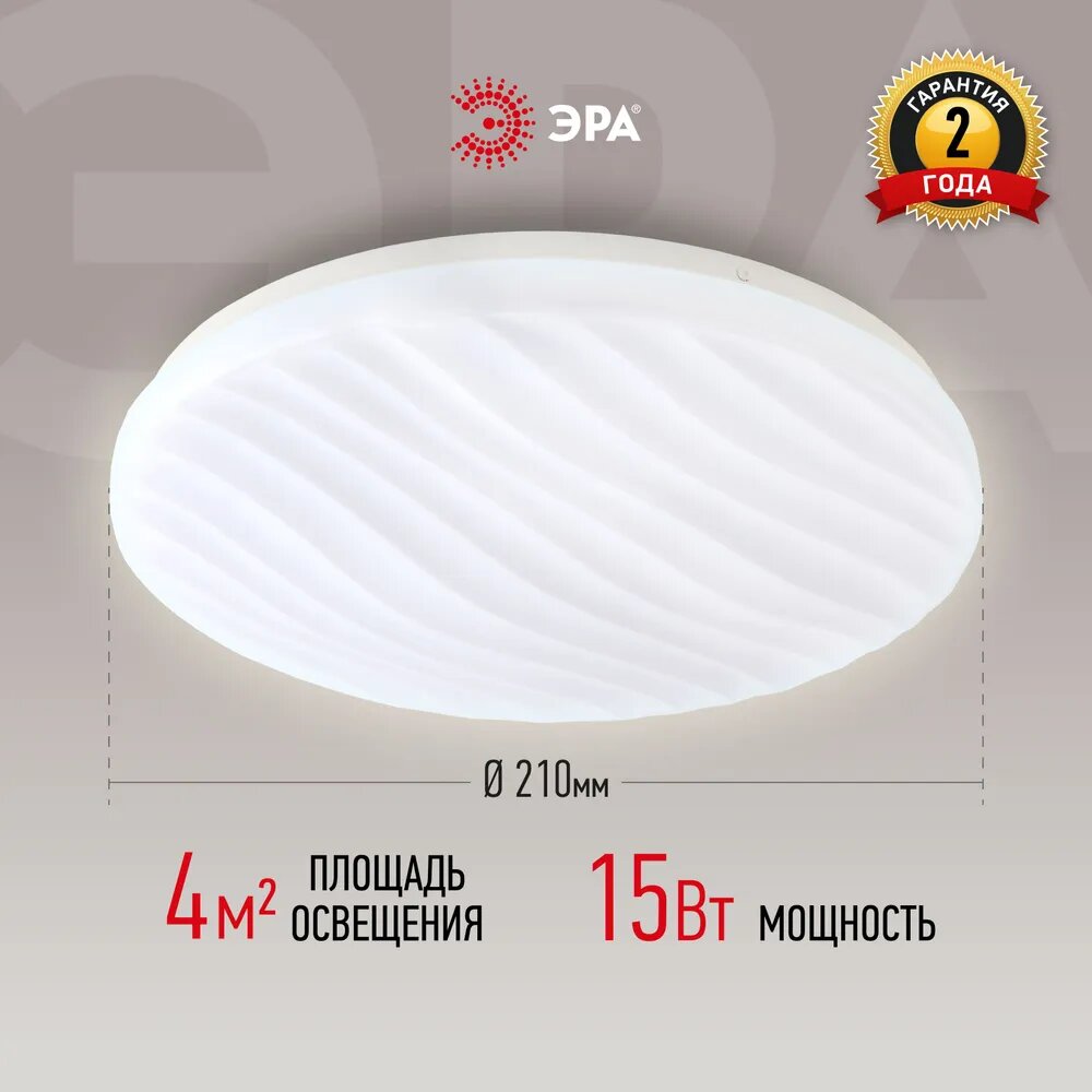 Светильник потолочный светодиодный ЭРА Slim 4 15-6K SPB-6 классика, 15Вт, 6500К