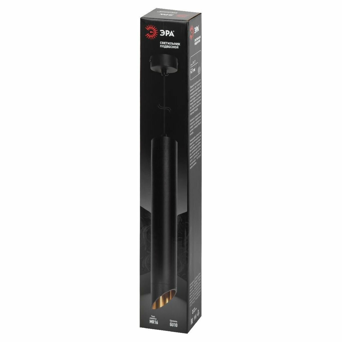 ЭРА Светильник подвесной (подвес) ЭРА PL 17 BK MR16/GU10, черный, потолочный, цилиндр