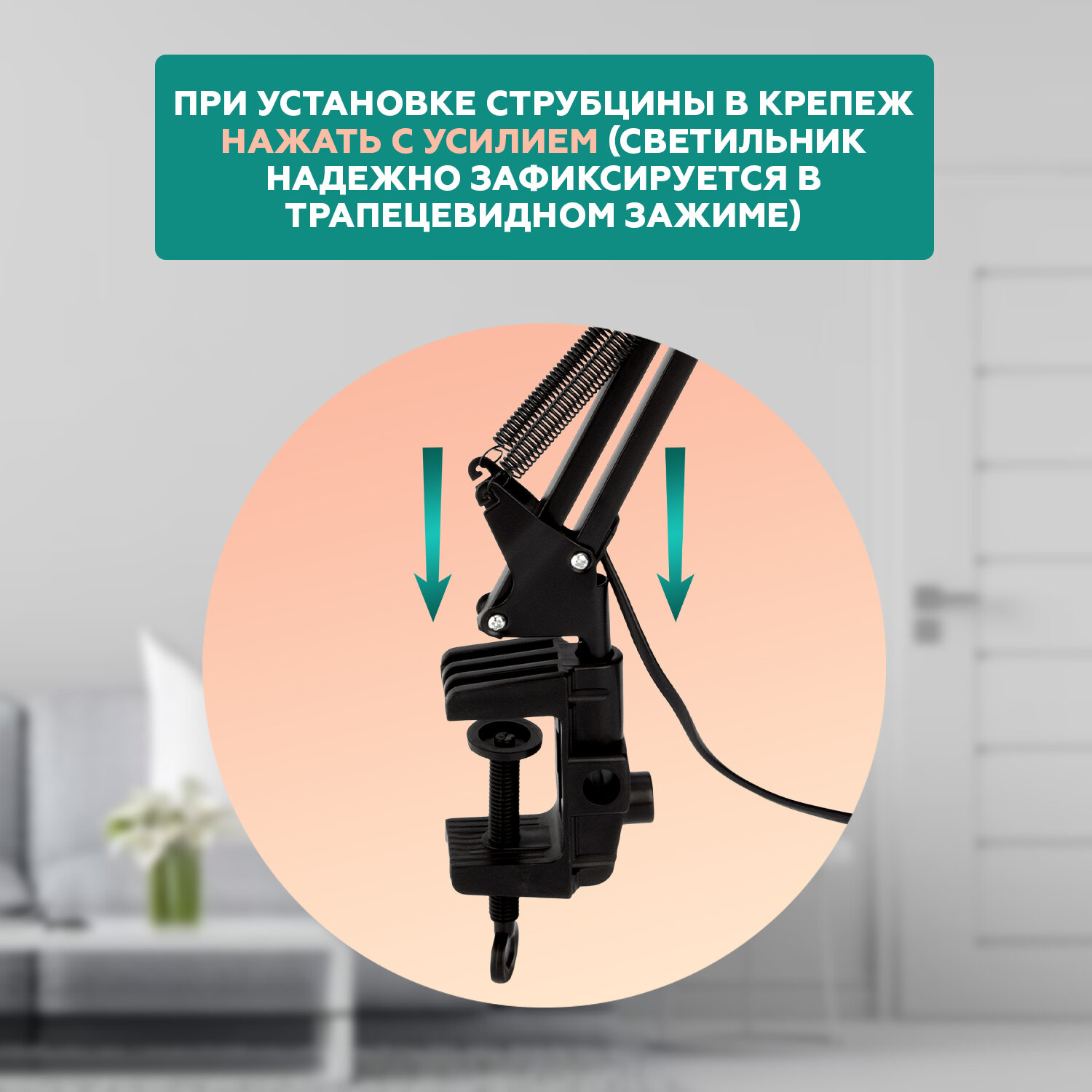Лампа электрическая настольная Rexant Акцент, с винтовым зажимом, антрацит интересное: