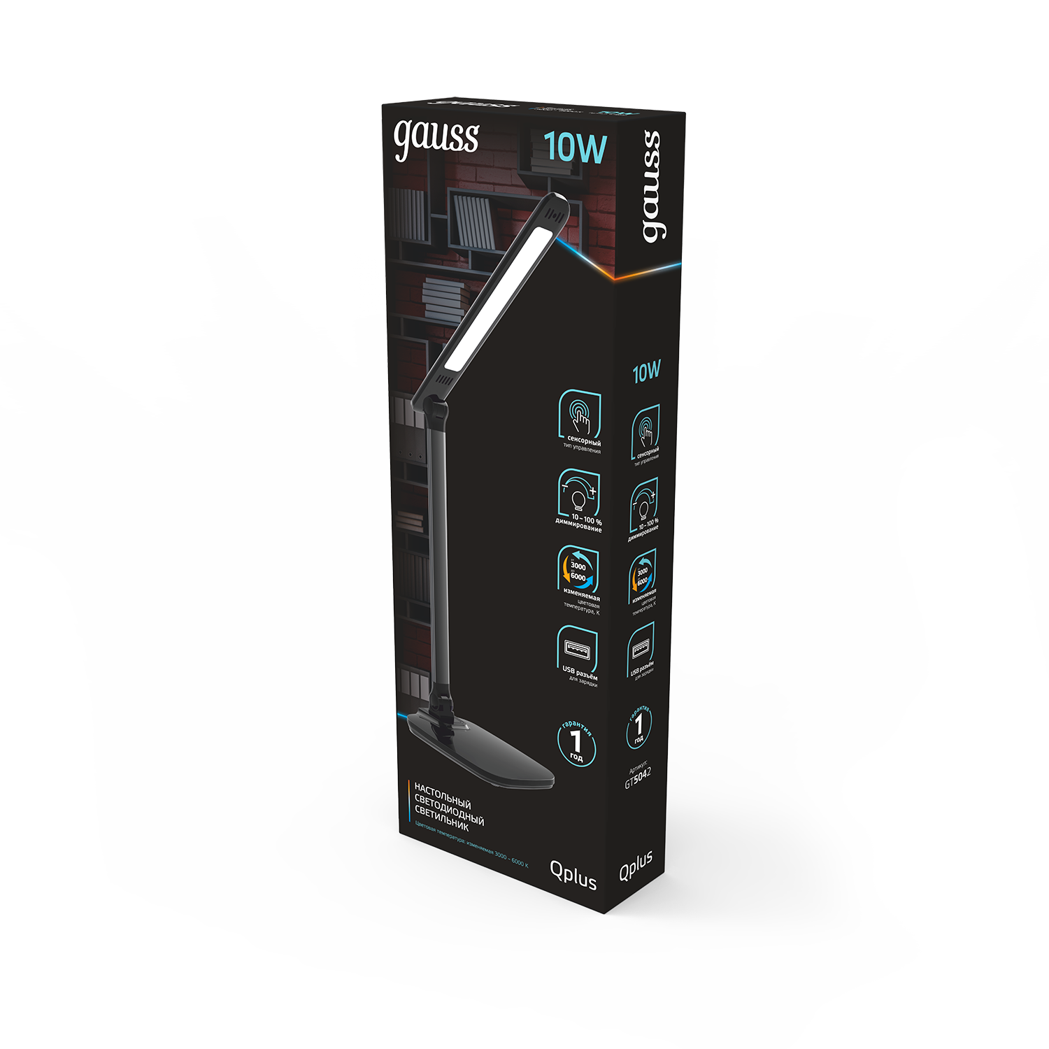 Светильник настольный Gauss Qplus модель GTL504 10W 590lm 3000-6000K 170-265V черный диммируемый USB LED 1/8/16