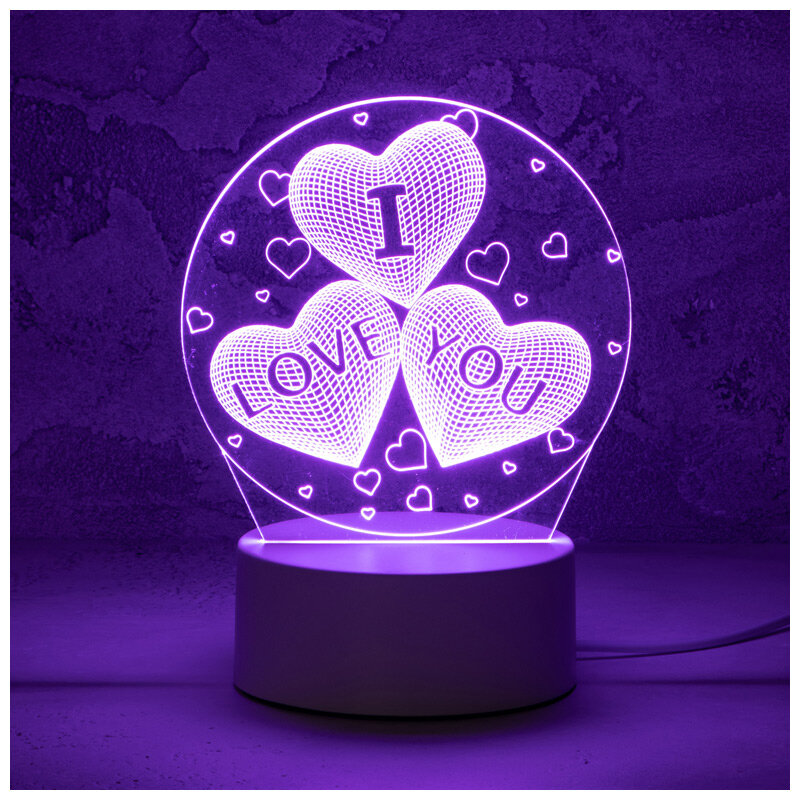 Ночник светодиодный Energy EN-NL-22 3D Три сердца, 5 В, 17 x 14 см интересное: