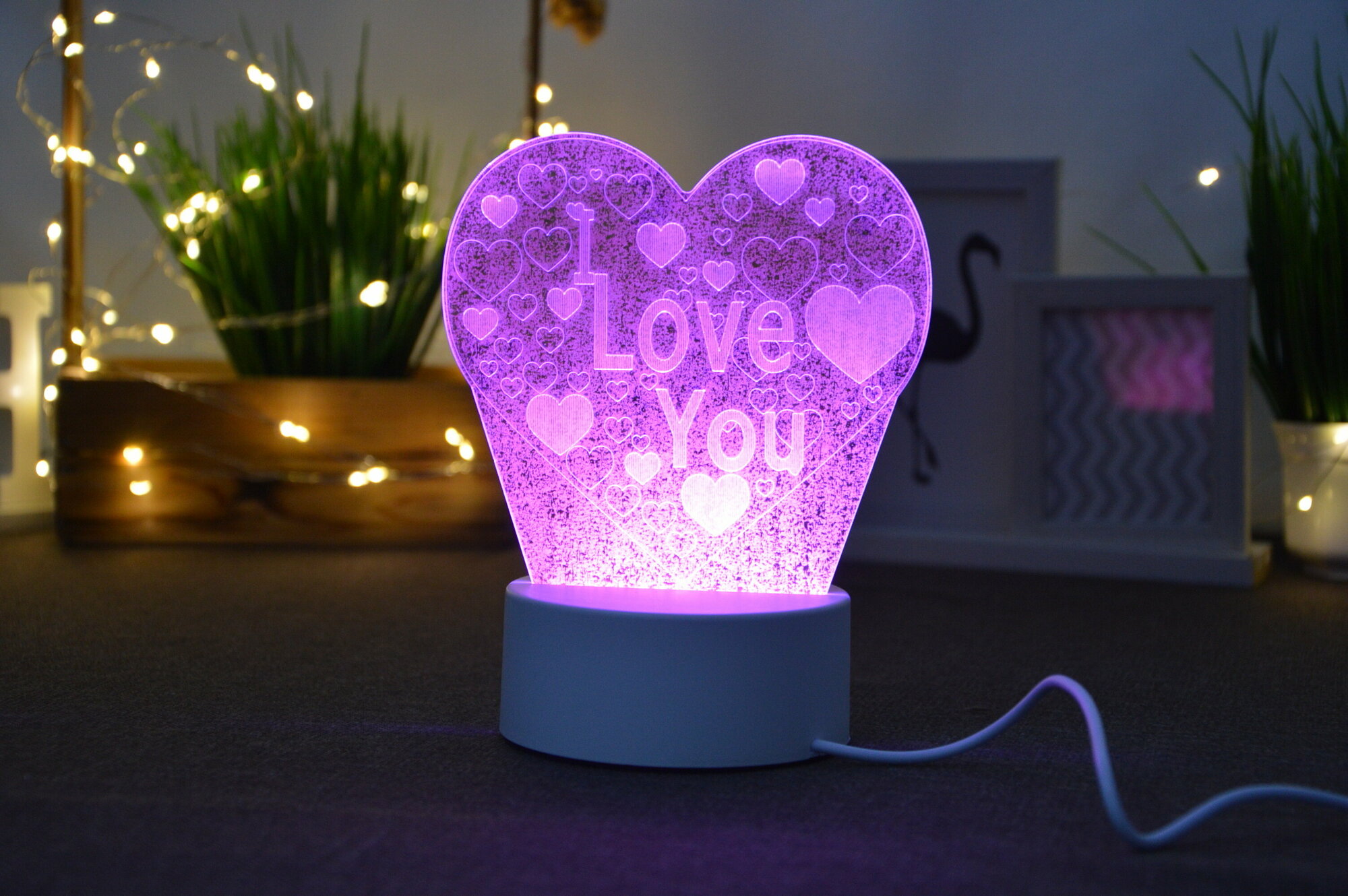Купить Ночник светодиодный Energy EN-NL 22 3D Сердце с надписью, 5 В, 17 x 14 см