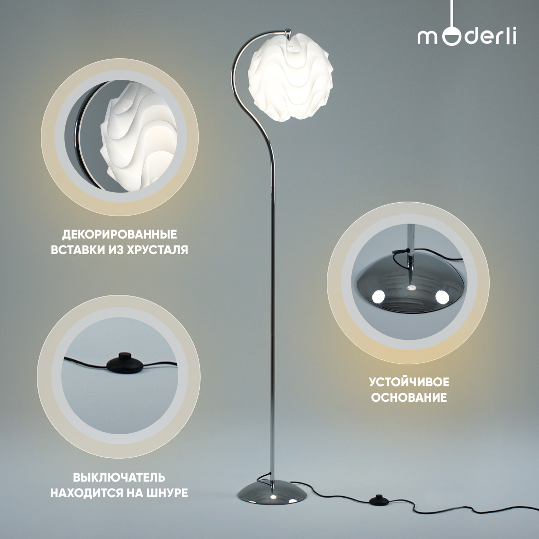 Ниже Вы можете прочитать отзывы на Торшер Moderli V11010-F Flake, ознакомится с подробными характеристиками, посмотреть интересные обзоры и фотографии на Торшер Moderli V11010-F Flake.