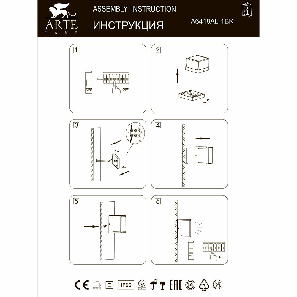 Светильник уличный настенный с лампочкой Arte lamp A2322AL-1BK+Lamps