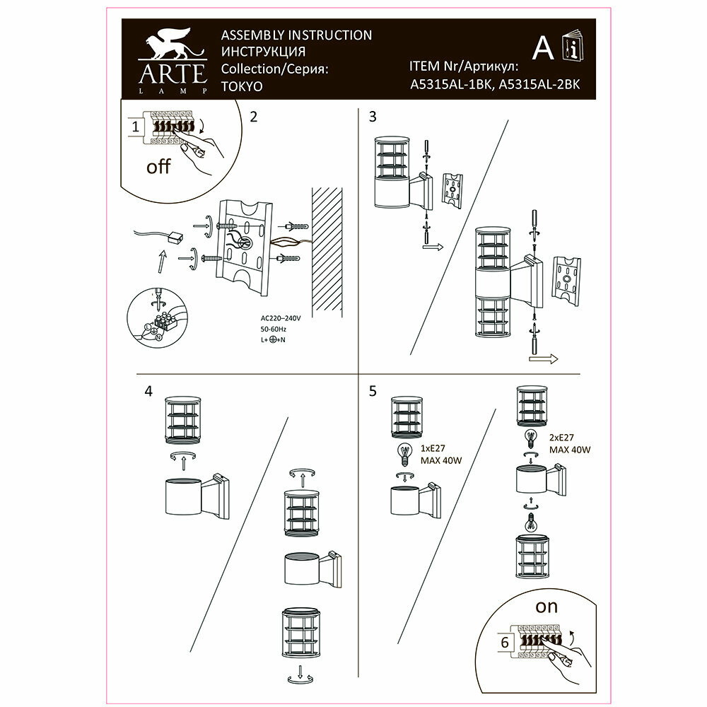 Ниже Вы можете прочитать отзывы на светильник уличный настенный ARTE LAMP Tokyo E27 2х40Вт метал, стекло, черный, ознакомится с подробными характеристиками, посмотреть интересные обзоры и фотографии на светильник уличный настенный ARTE LAMP Tokyo E27 2х40Вт метал, стекло, черный.