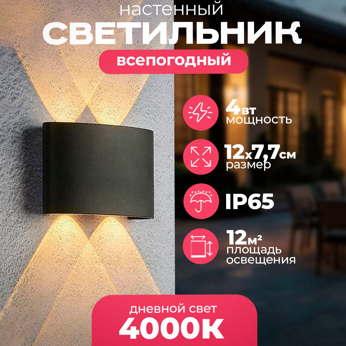 Светильник всепогодный светодиодный Netsu 2 Black (120х77 мм) 4W, дневной свет 4000K интересное: