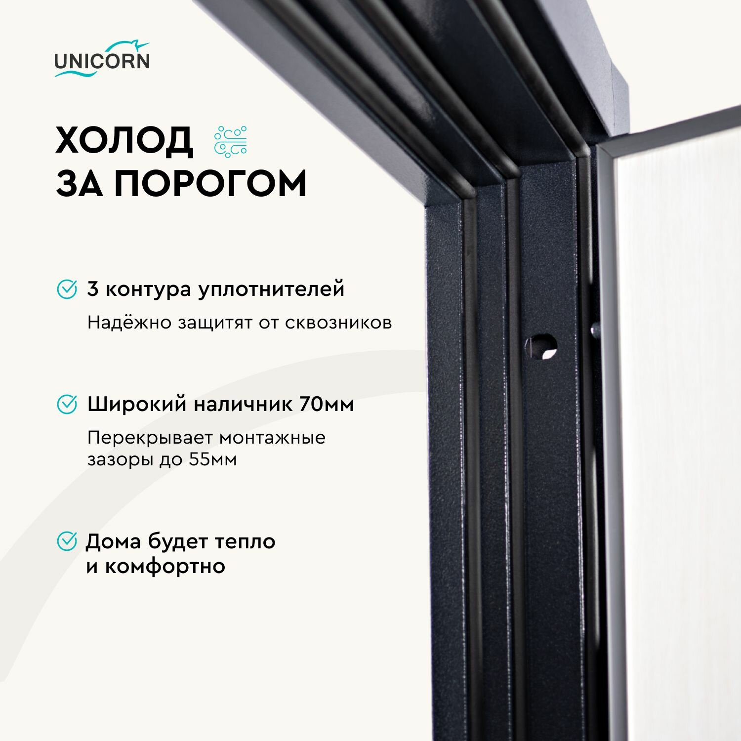 Дверь входная в дом с терморазрывом Unicorn Village Optimal 880х2050, открывание влево, атмосферостойкое покрытие, три уплотнителя и три петли, замки 3-го класса