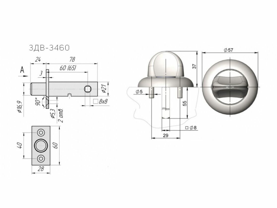 Завертка дверная межкомнатная, сантехническая, цвет античное серебро