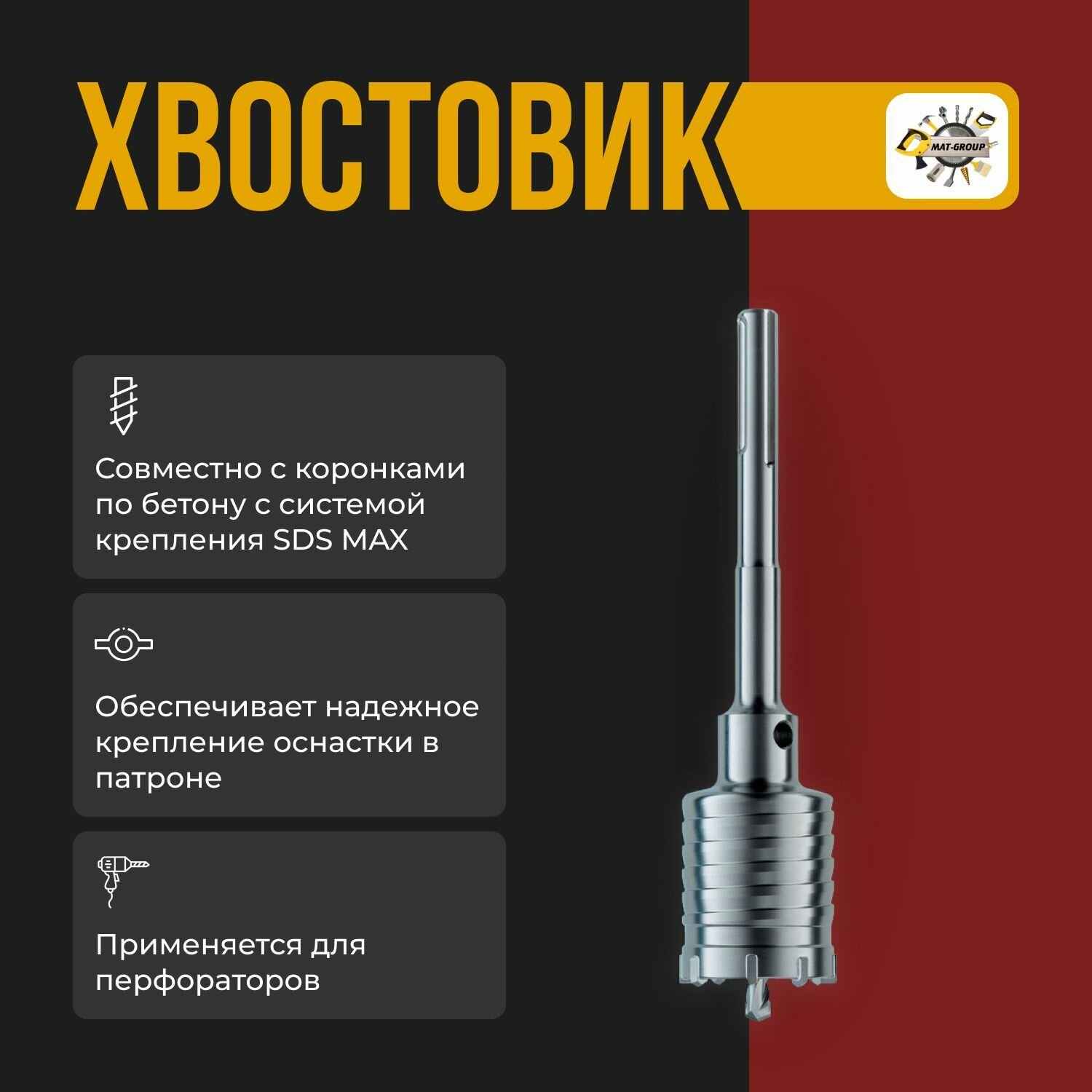 Удлинитель хвостовик для коронки SDS-MAX 400 мм для перфоратора с направляющим сверлом интересное: