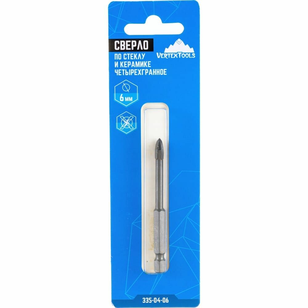 Сверло по стеклу и керамике VertexTools 6 мм четырехгранное сверло с шестигранным хвостовиком твердосплавное ВК6Х
