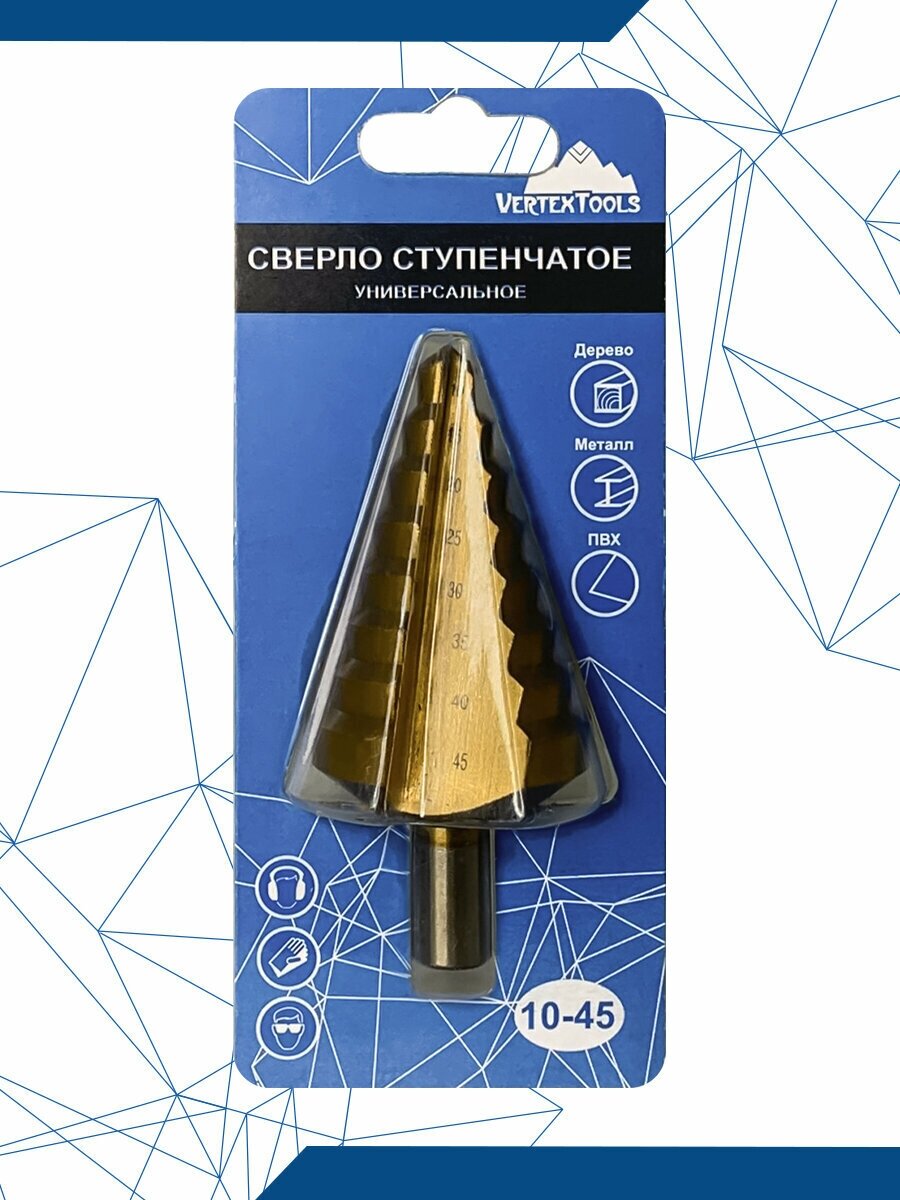 Купить Сверло ступенчатое по металлу Vertextools 10x45, шаг 5мм