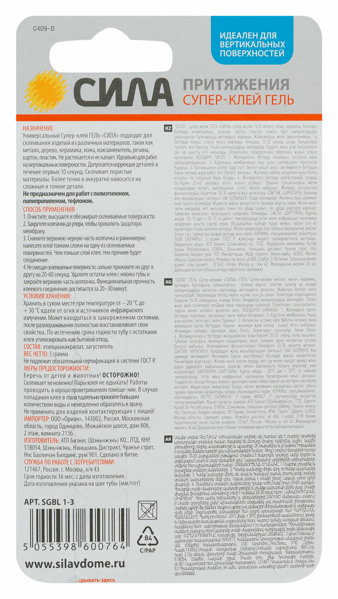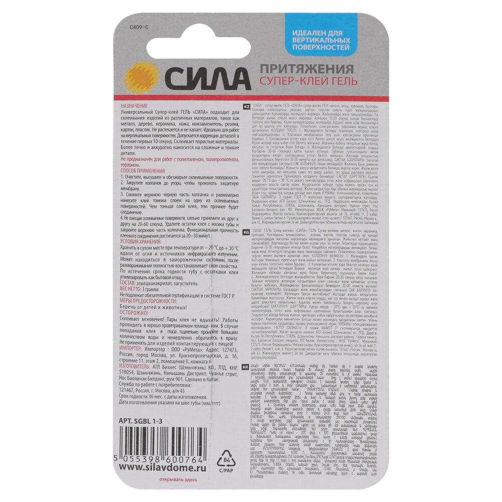 Суперклей гель моментальный сила SGBL1-3 быстросохнущий, для пластика, для дерева, для обуви 3 гр