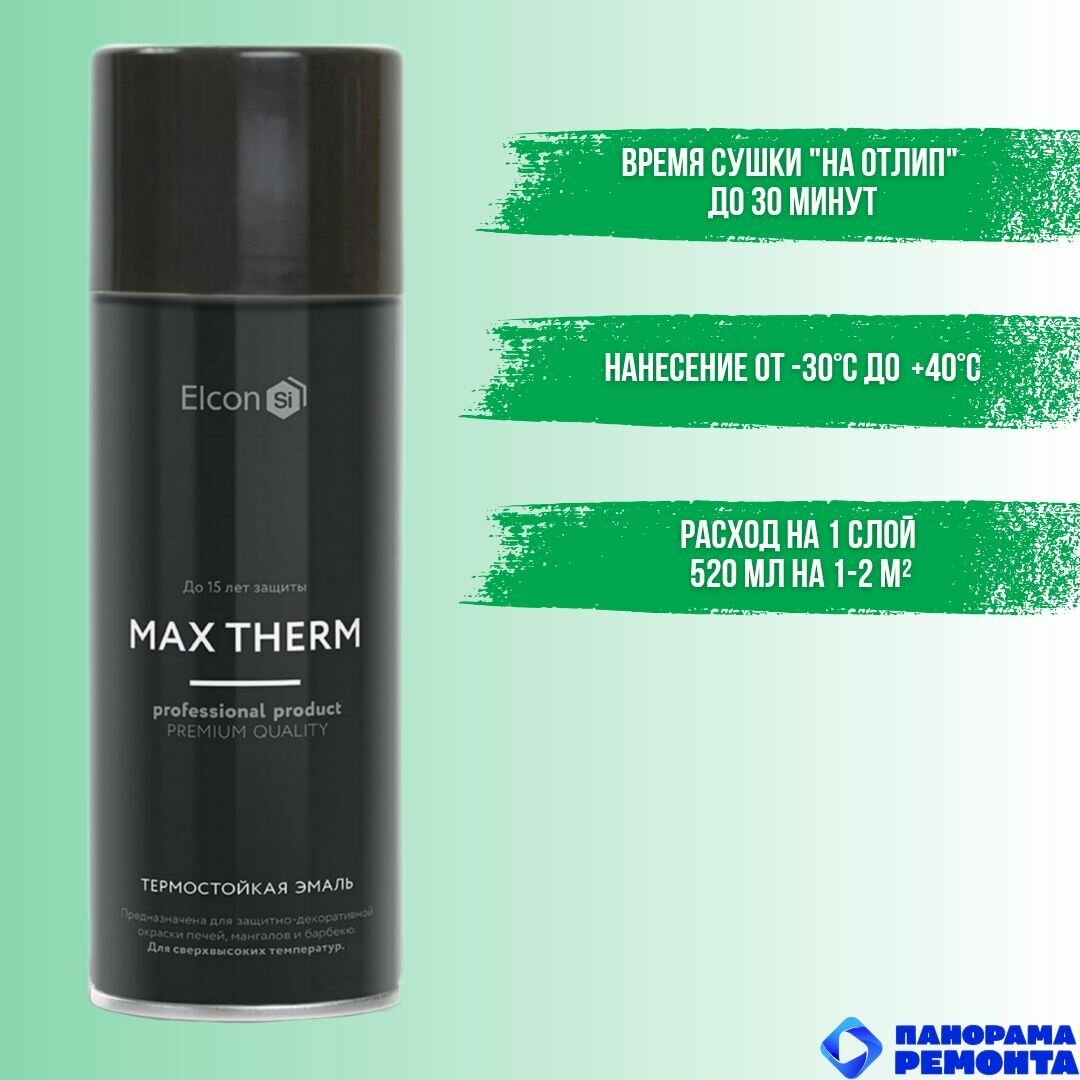 Краска аэрозольная Elcon Max Therm Черная (до 1000С) для мангалов, быстросохнущая, термостойкая, аэрозоль 520 мл