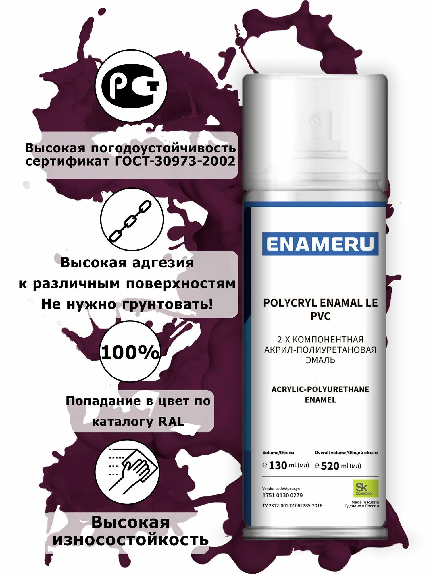 Структурная краска для ПВХ, пластика, окон Энамеру, Быстросохнущая, Акрил-полиуретановая, Полуматовая, 0.52 л, Транспортный пурпурный RAL 4006