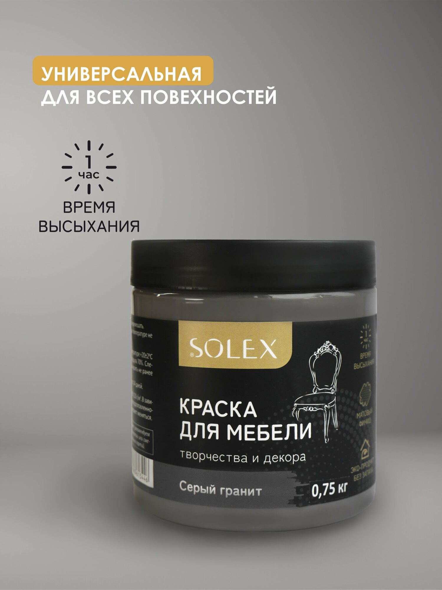 Краска для мебели и декора SOLEX универсальная Серый гранит 0,75кг