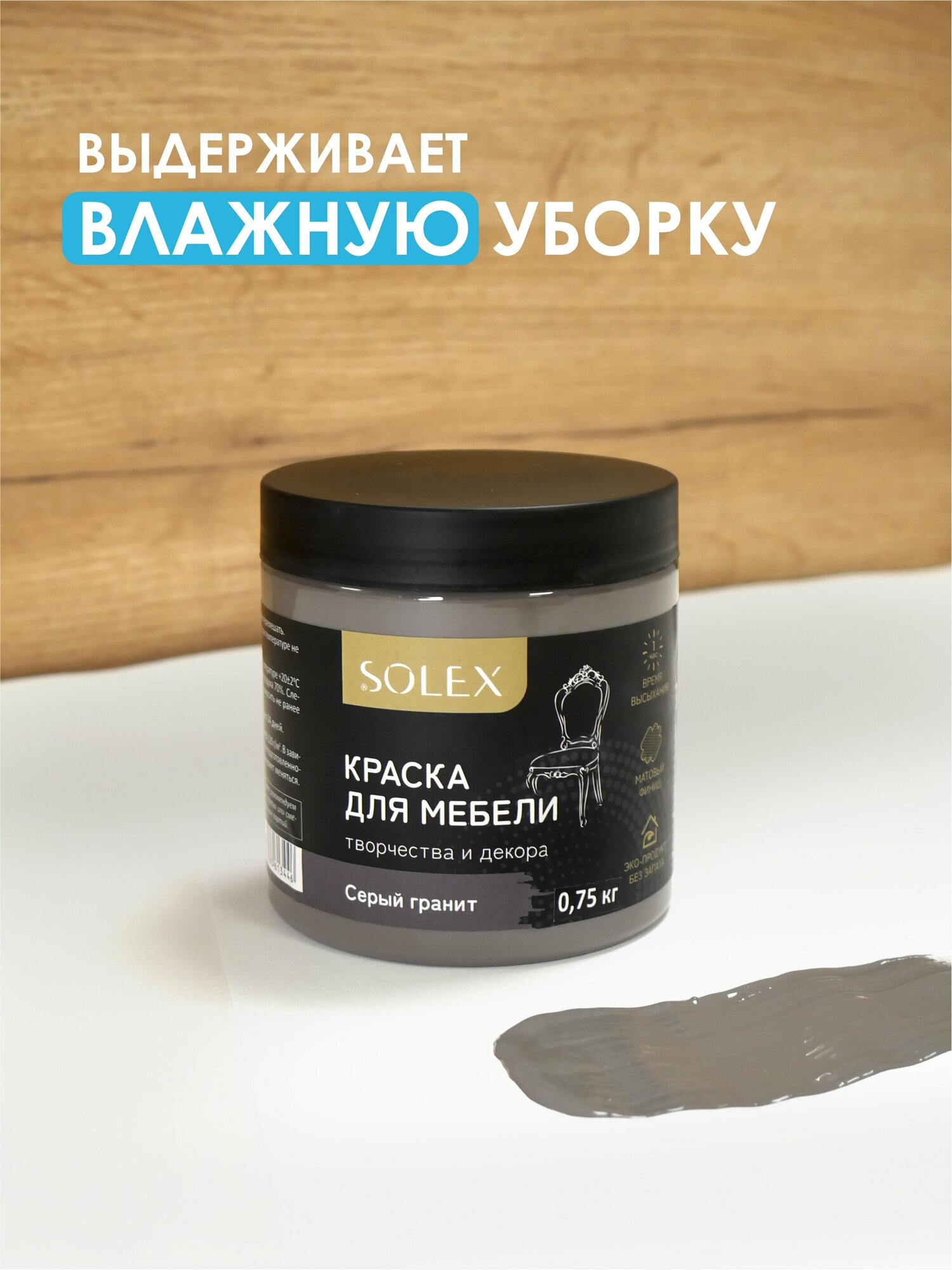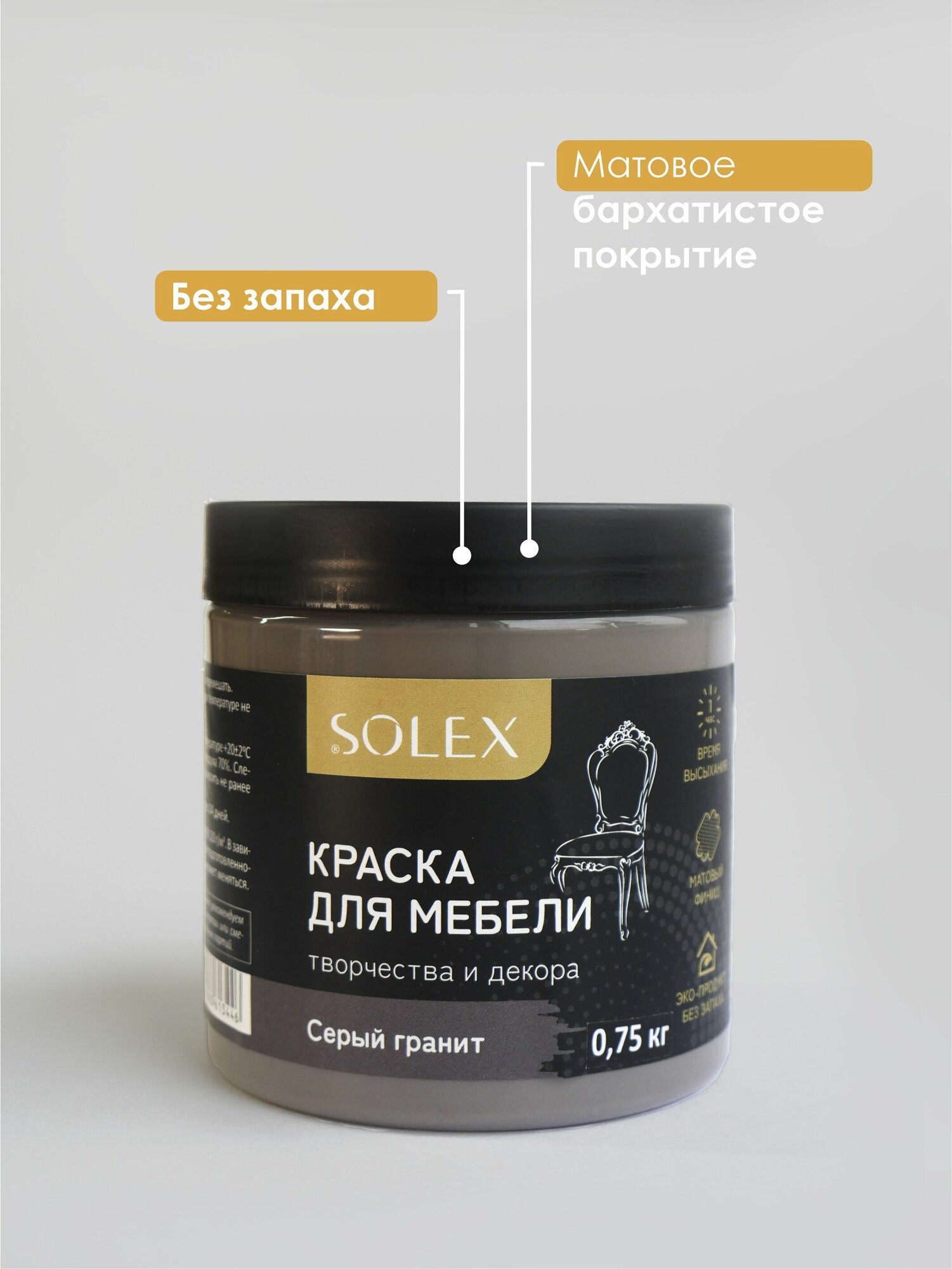 Купить Краска для мебели SOLEX (Серый гранит) - 0,75 кг.