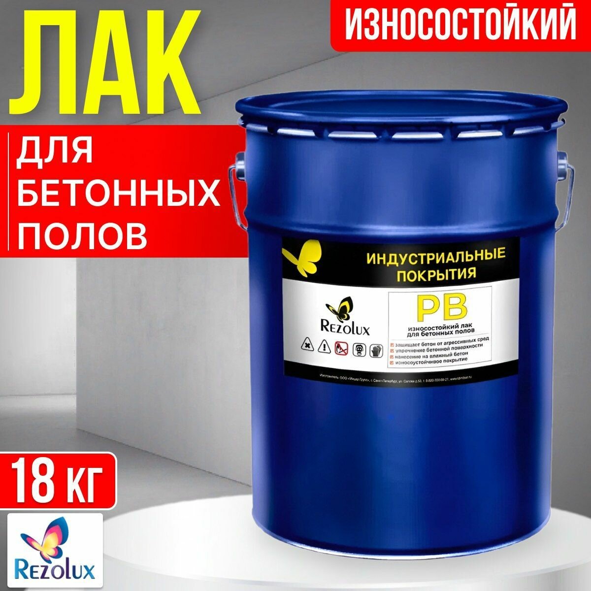 Износостойкий прозрачный лак Rezolux для бетонных полов (компаунд), 18 кг. интересное: