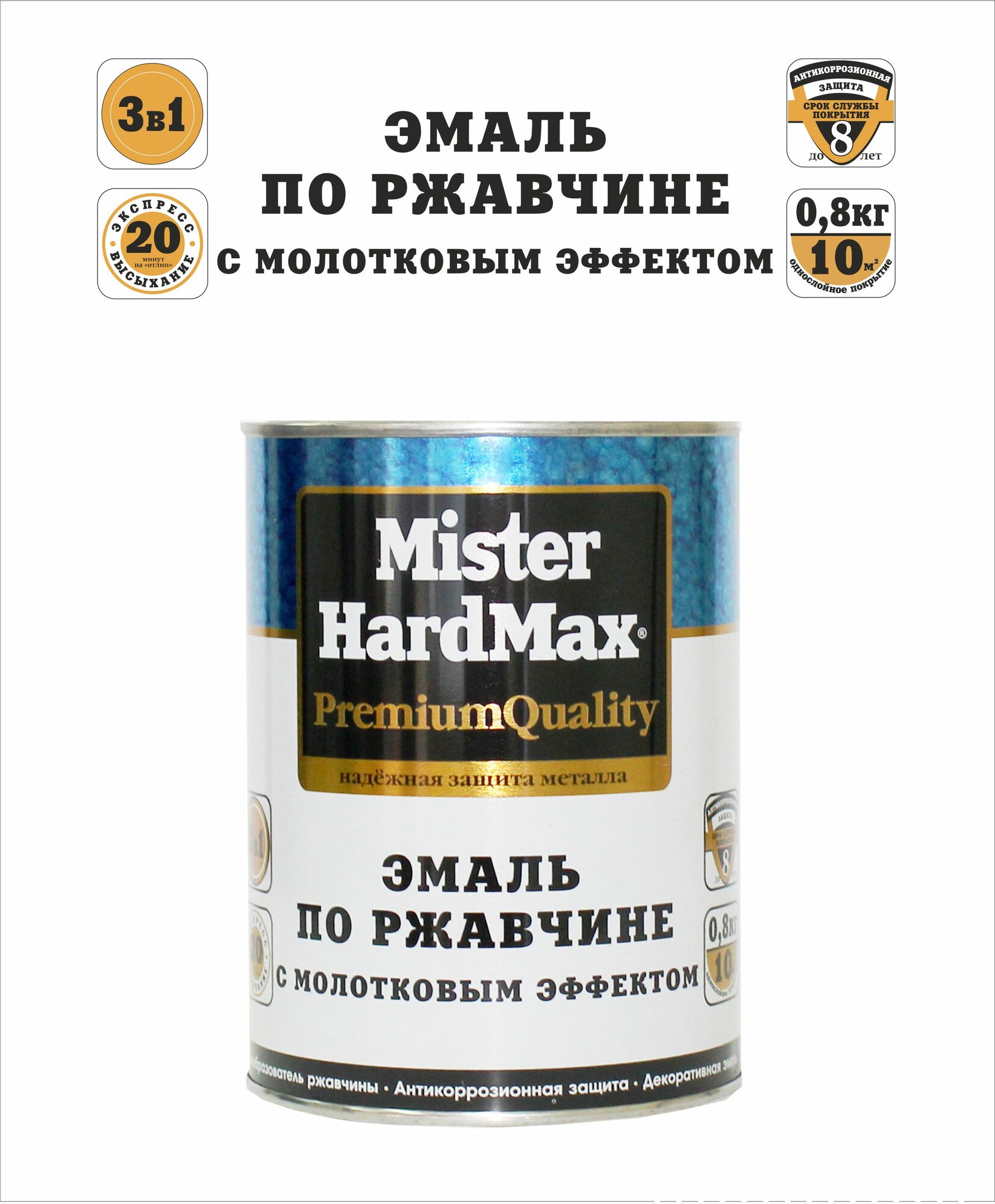 HardMax Эмаль молотковая 3 в 1 краска по металлу, по ржавчине , глянцевое покрытие, сине-голубой, 0.8 кг