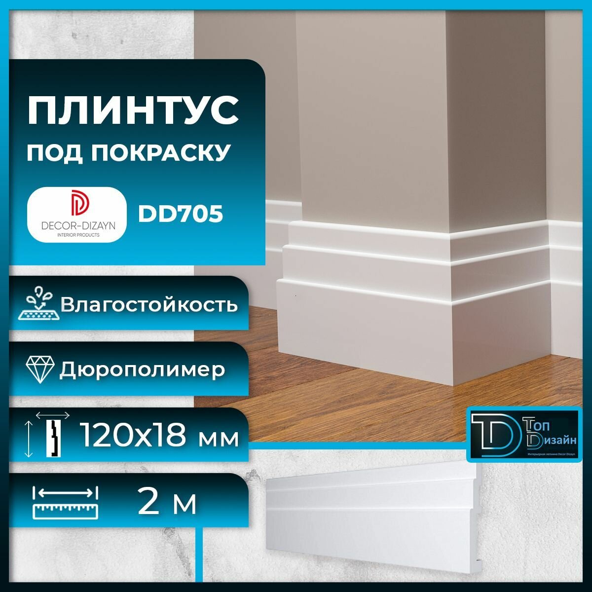 Купить Плинтус напольный, под покраску, дюрополимер Decor-Dizayn (Декор-Дизайн) DD705, размер 120х18x2000мм