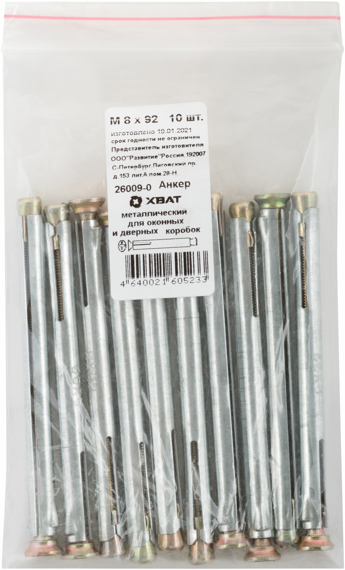 Купить Анкер металлический для оконных и дверных коробок М 8 х 92 10 шт Фасовка XВАТ 26009-0