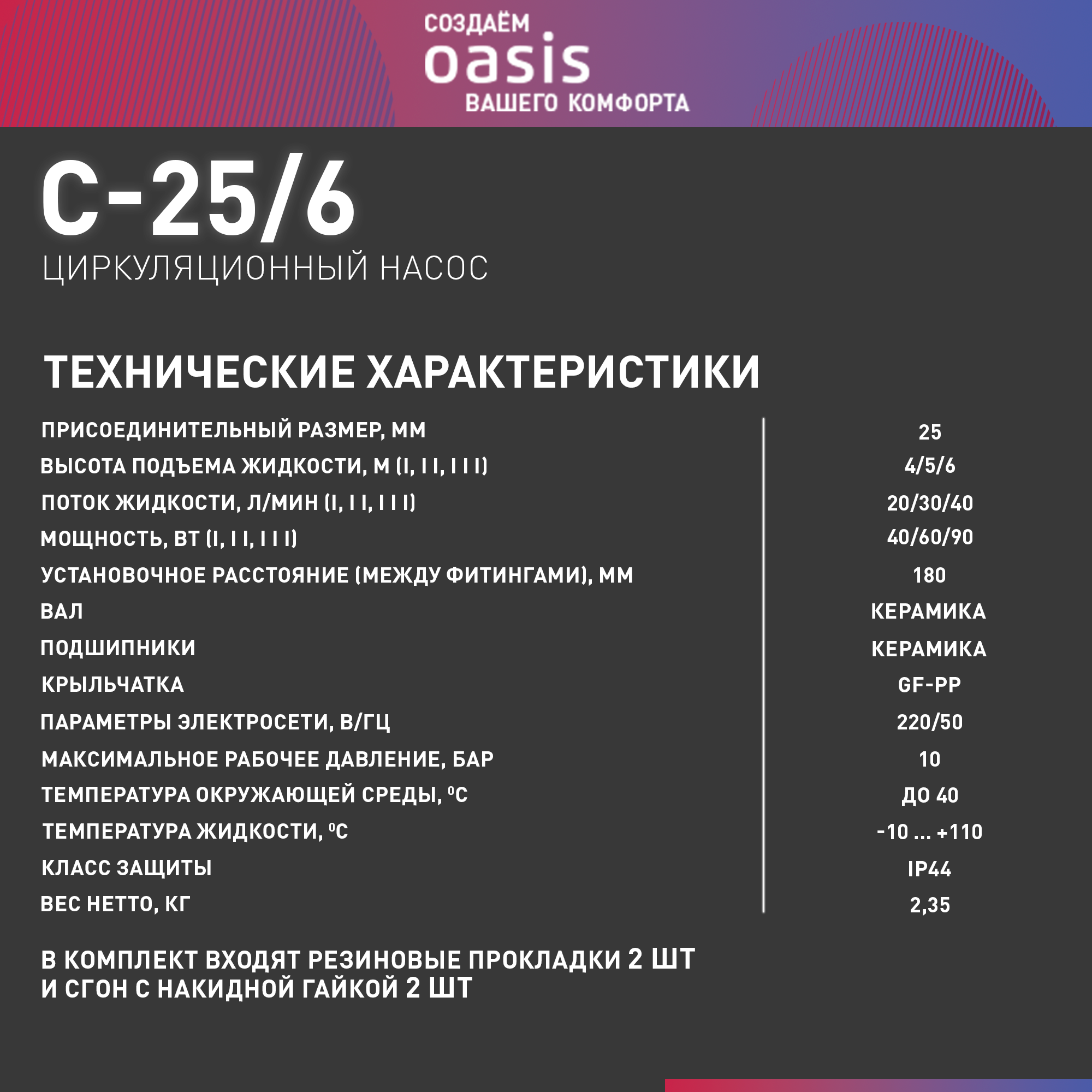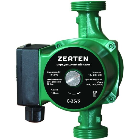 Насос циркуляционный для отопления Zerten C-25/6, 90 Вт, напор 6 м, 40 л/мин