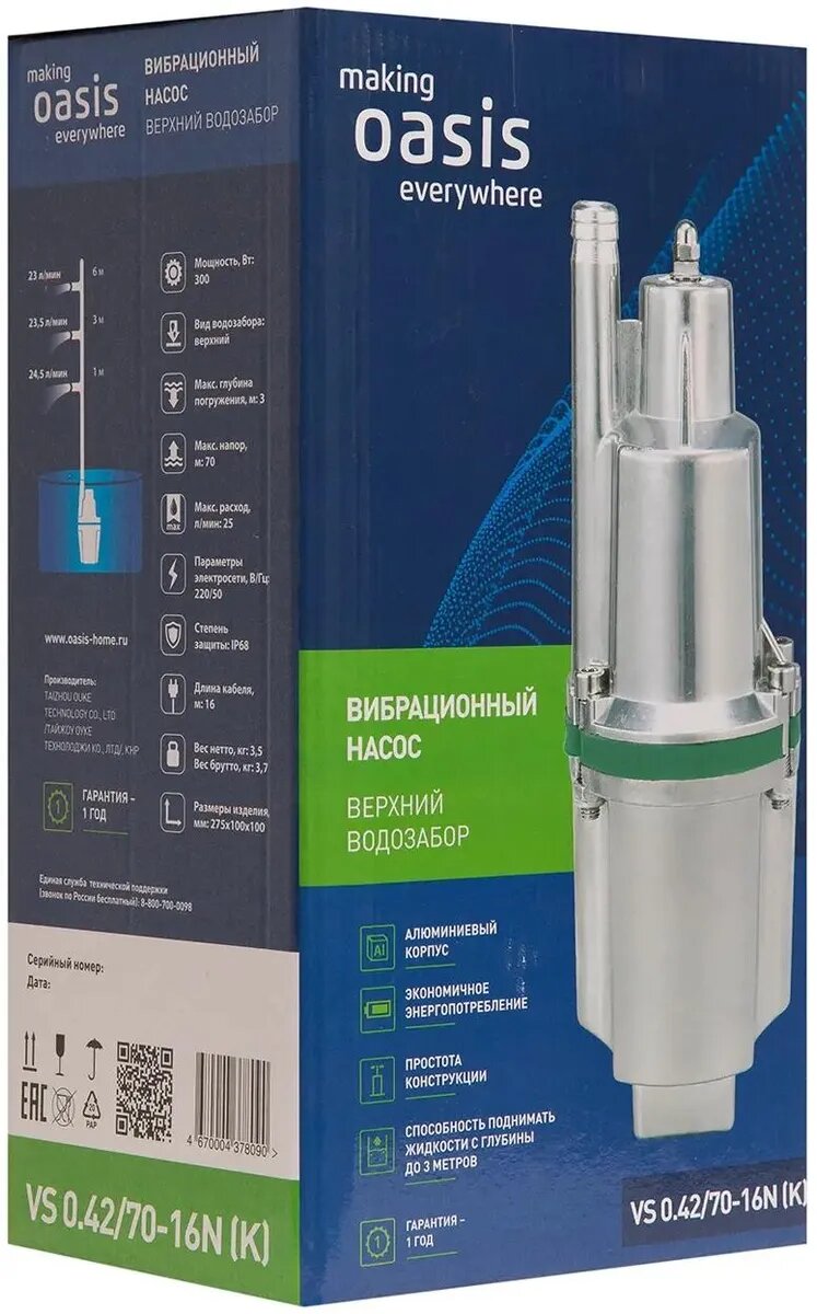Насос вибрационный VS 0,42/70-25м c верхним водозабором Oasis интересное: