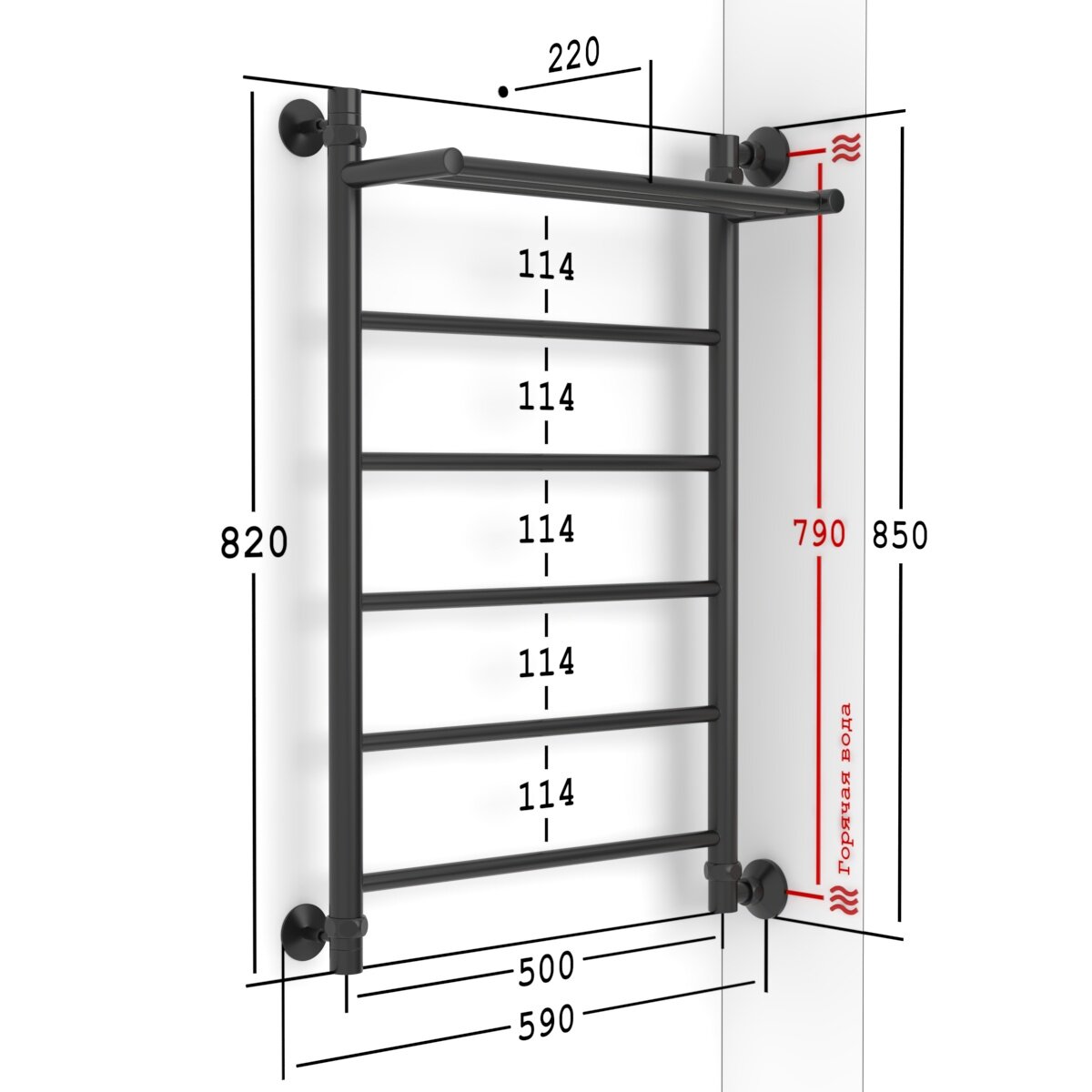 Полотенцесушитель Водяной Onix, модель Classic Plus Black 500x800 Лесенка с нижним подключением, Черный матовый, полный комплект