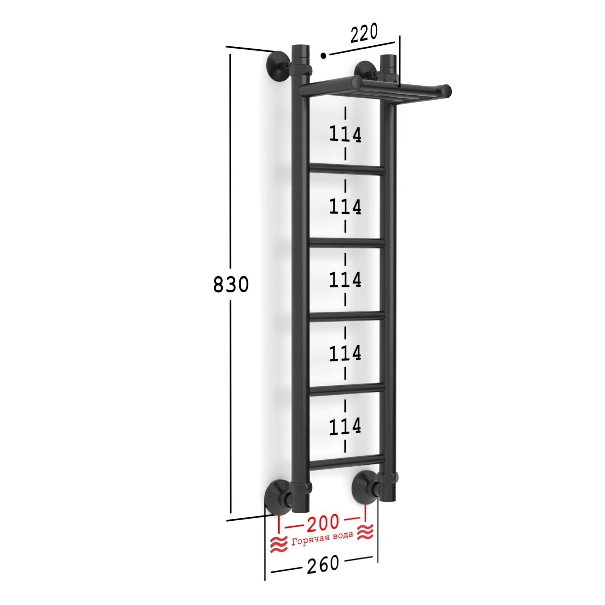 Полотенцесушитель Водяной Onix, модель Classic Plus Black Right 200x800, Лесенка с боковым подключением справа, Черный матовый, полный комплект