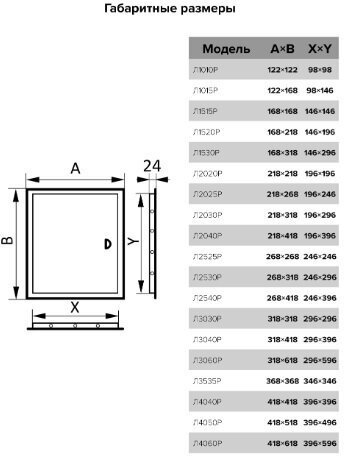 | Дополнительная информация | возможность универсального монтажа для левостороннего или правостороннего открывания, монтаж осуществляется при помощи раствора или клея, предназначен для установки в стене или потолке |
