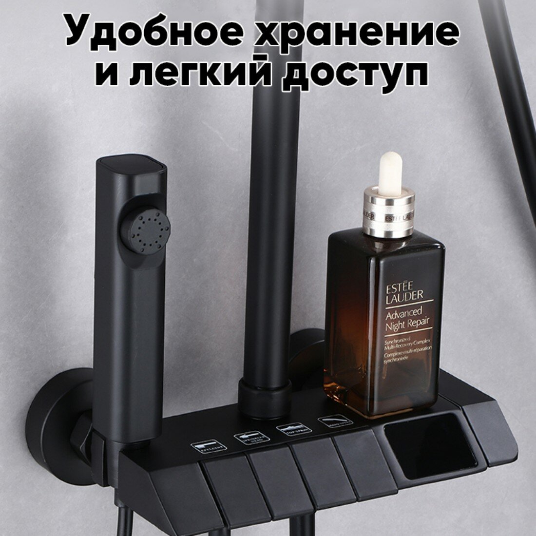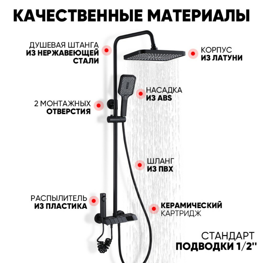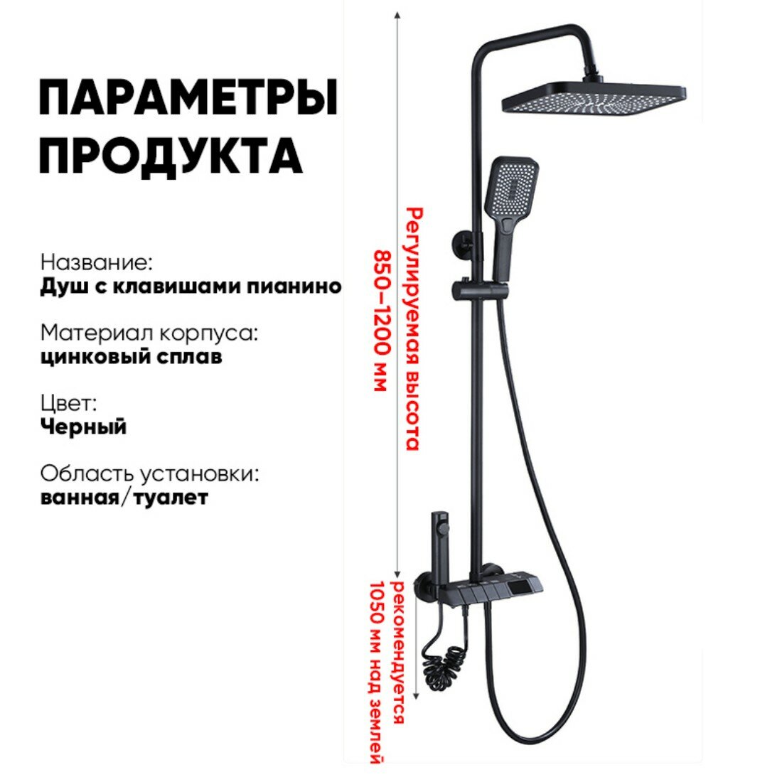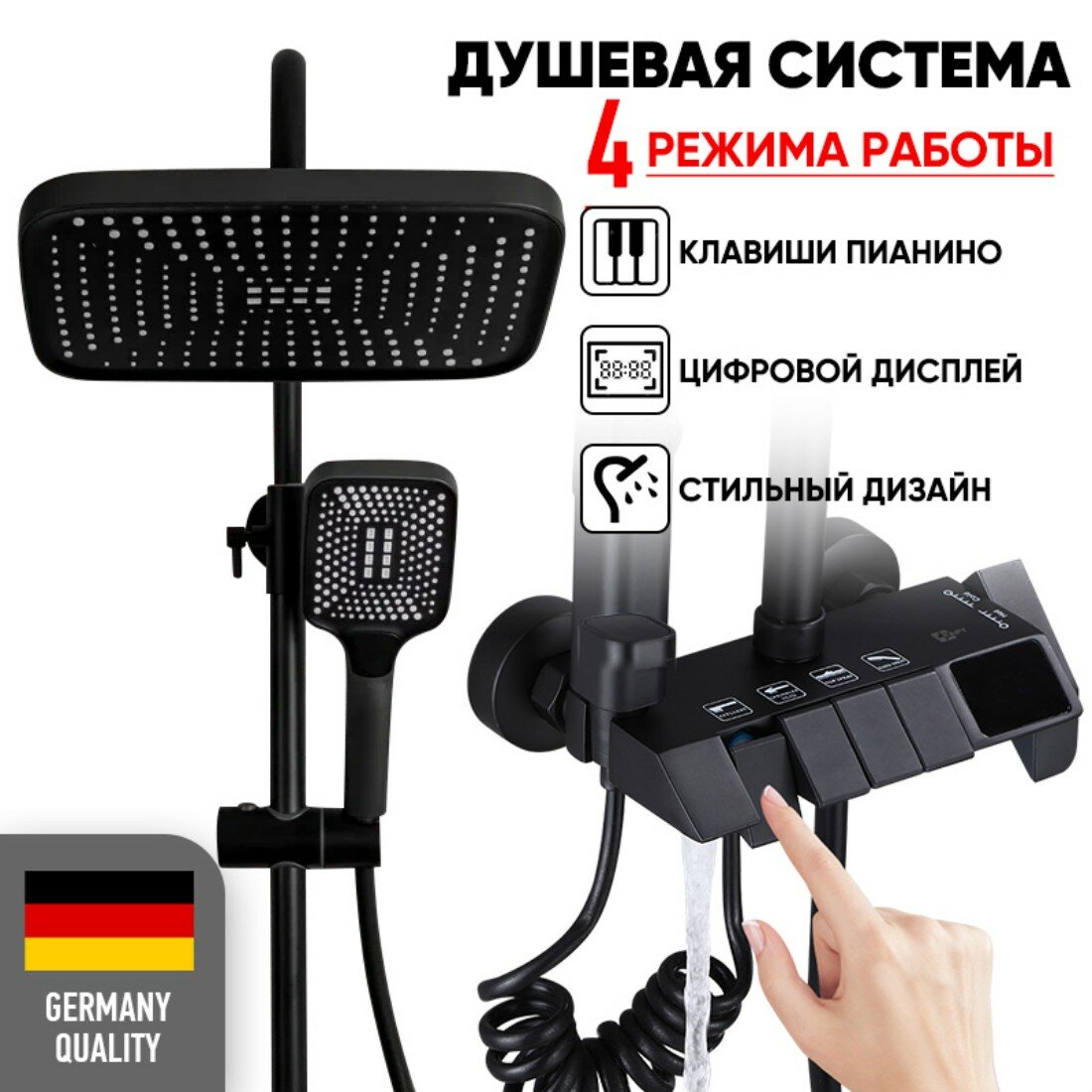 Душевая система с тропическим дождем, душевой кабиной и душевой стойкой, черный интересное: