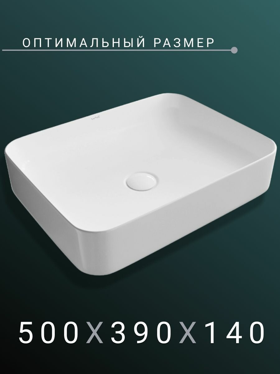Купить Раковина в ванную накладная на столешницу прямоугольная 500*390*140 Ш*Г*В