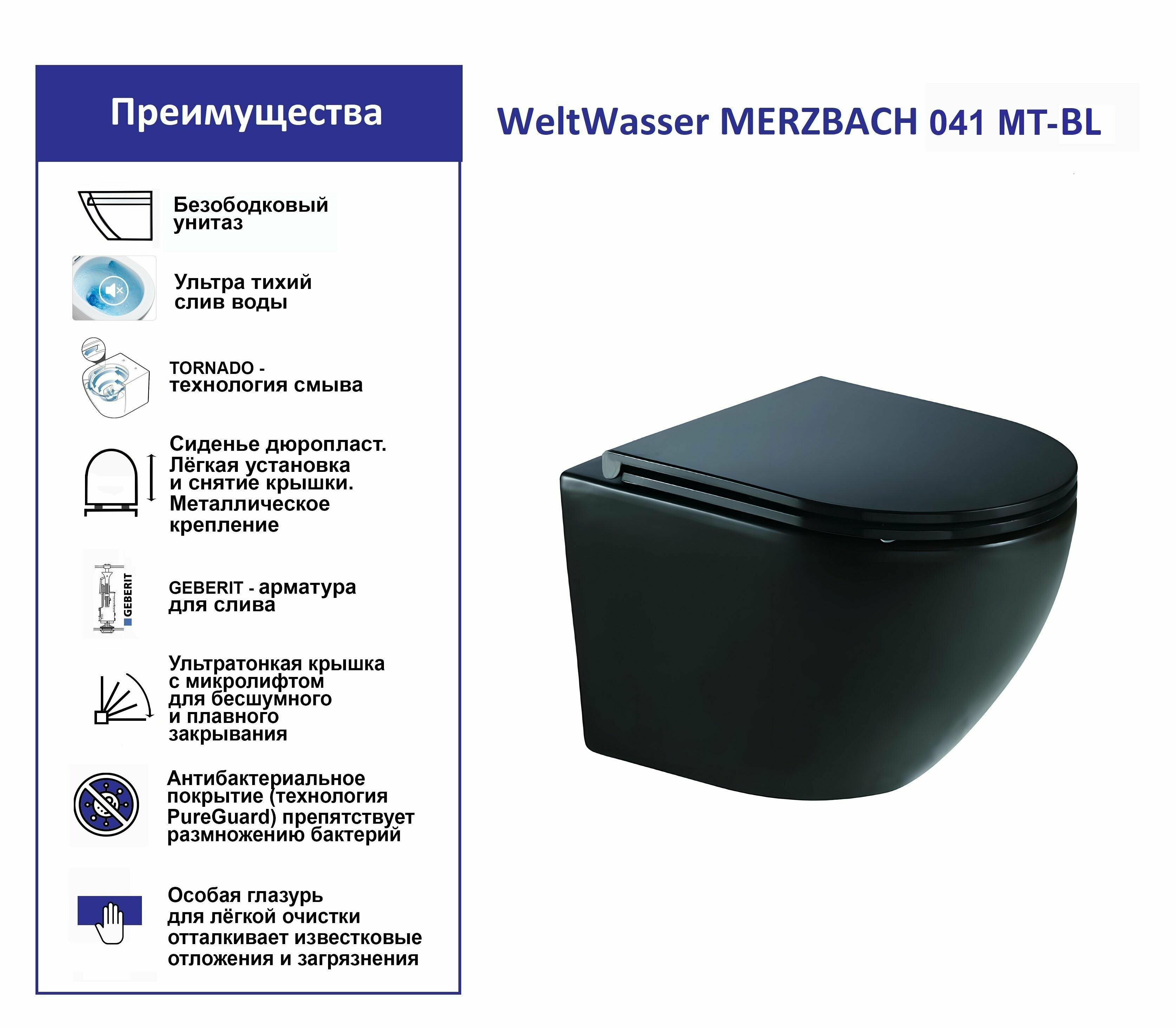 Унитаз подвесной WeltWasser Merzbach 041 MT-BL безободковый торнадо