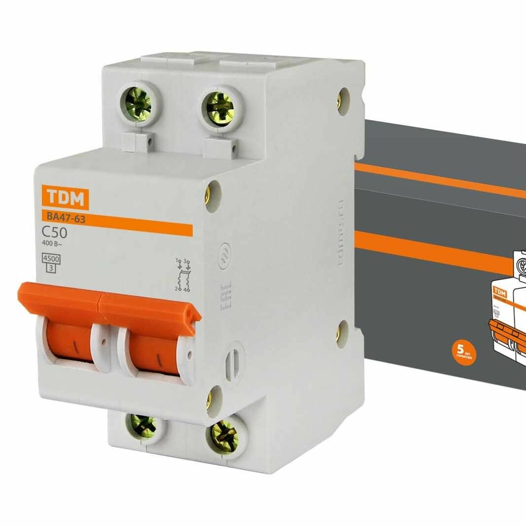 Автоматический выключатель TDM ВА47-63 2P 50А характеристика C (комплект из 2 шт)