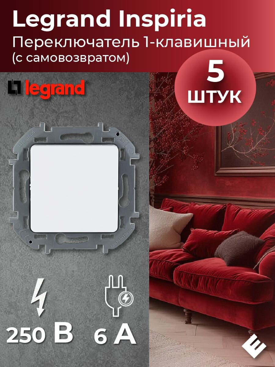 СохранитьПереключатель одноклавишный с самовозвратом (Белый) 10AX, 250В, Legrand INSPIRIA (комплект 5шт) интересное: