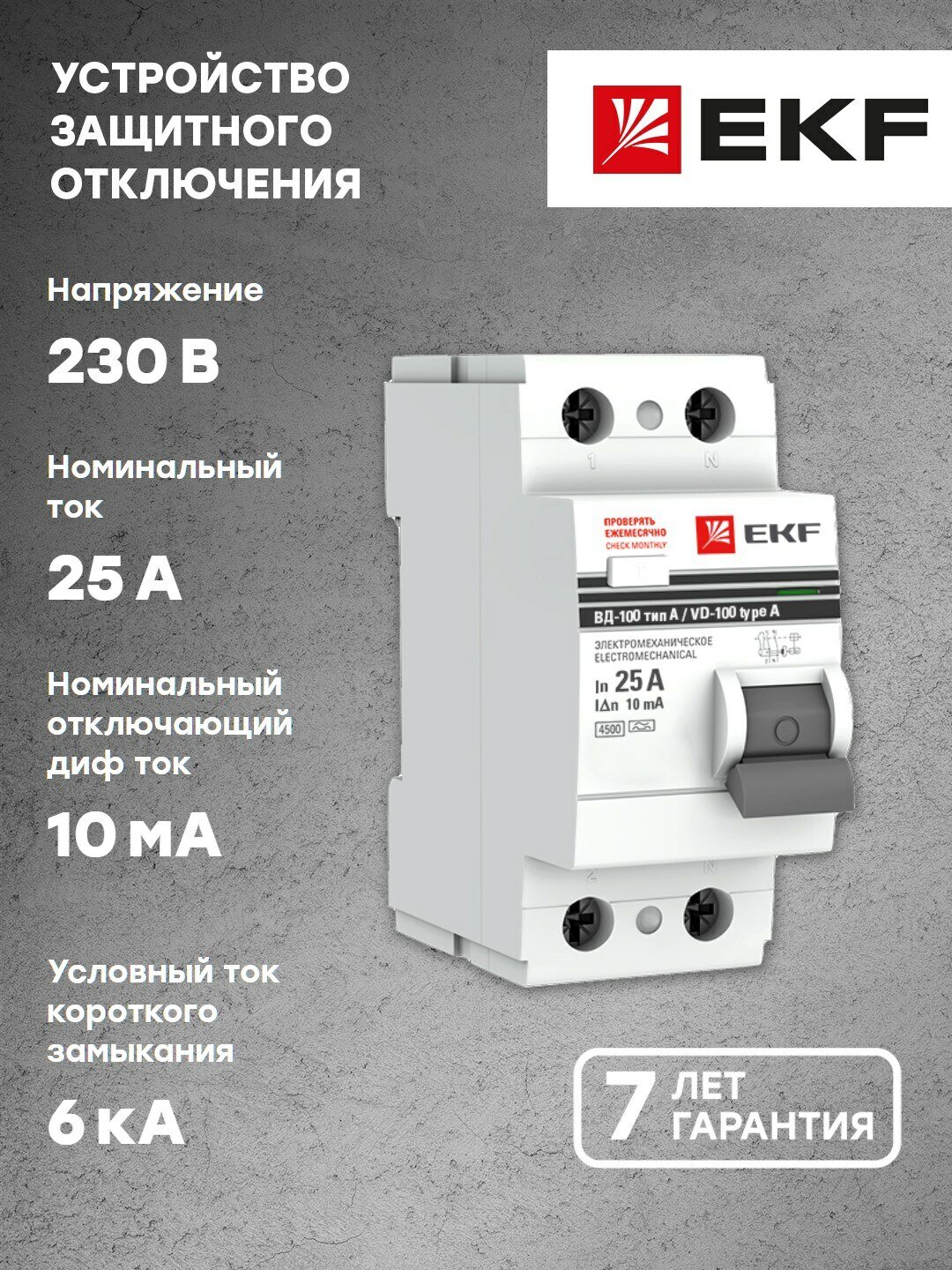 EKF Устройство Защитного Отключения ВД-100 2P 25А/10мА (эл-мех, тип А) PROxima elcb-2-25-10-em-a-pro интересное: